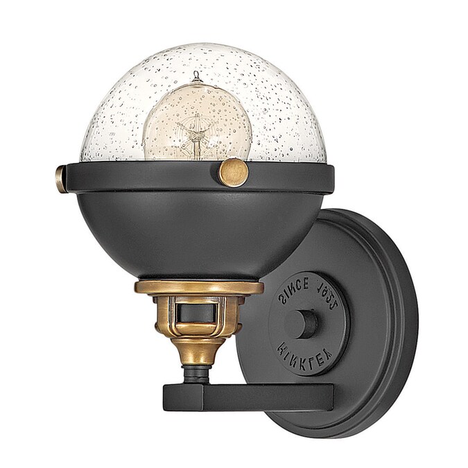 Hinkley’s Fletcher Single Light Vanity Wall Sconce is a blend of vintage and industrial with bold, decorative elements in a trendy, two-toned fixture that can go anywhere besides a bathroom or powder room. A seamless dome topped with a cast fitter, secures together with a Clear Seedy Glass shade below with decorative cast knobs around the middle. Inside the globe, an 8w Medium LED bulb (not included) brightens spaces around mirrors and bedsides.