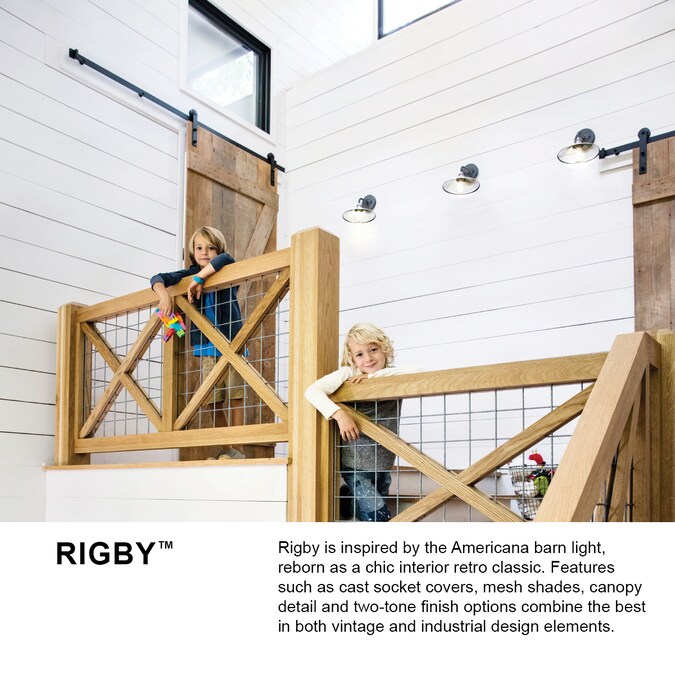Rigby is inspired by the Americana barn light, reborn as a chic interior retro classic. Features such as cast socket covers, mesh shades, canopy detail and two-tone finish options combine the best in both vintage and industrial design elements.