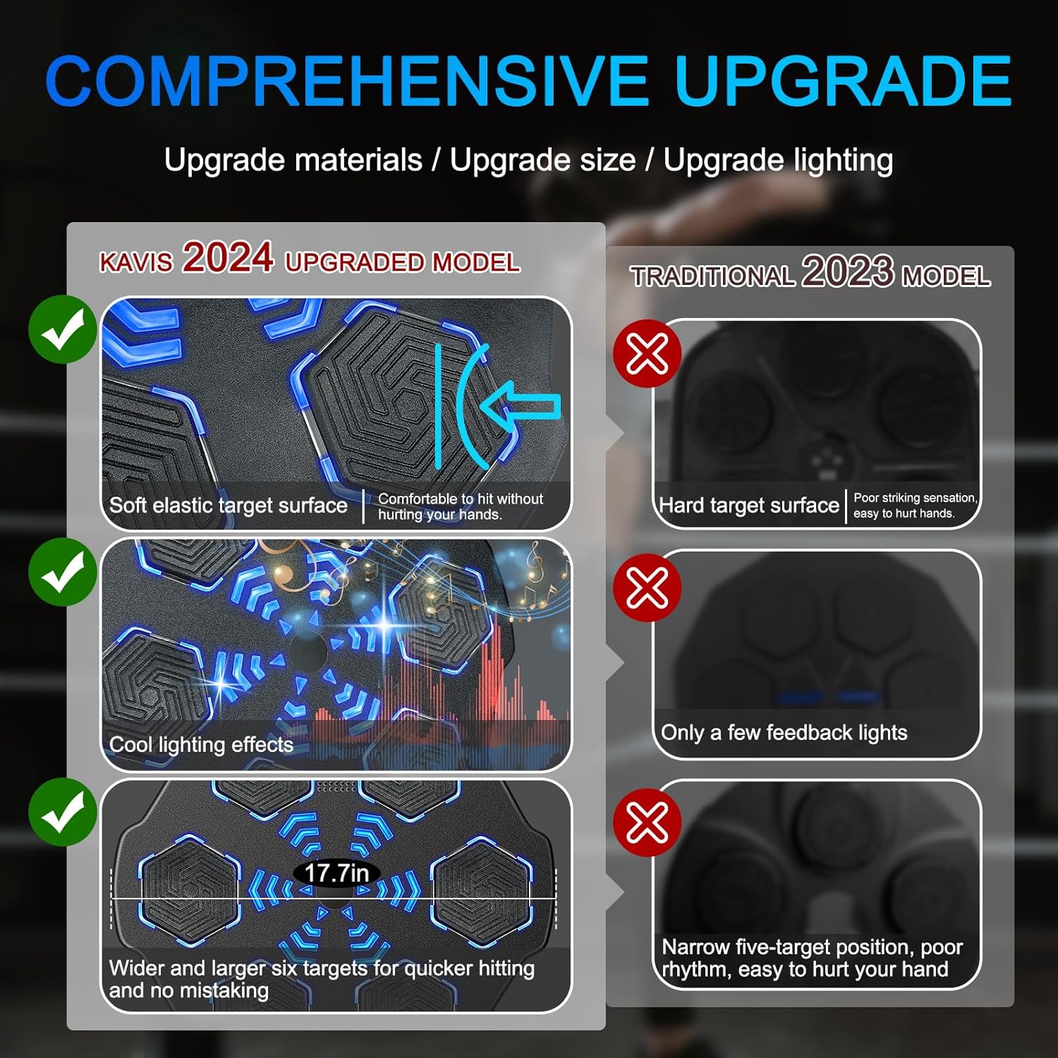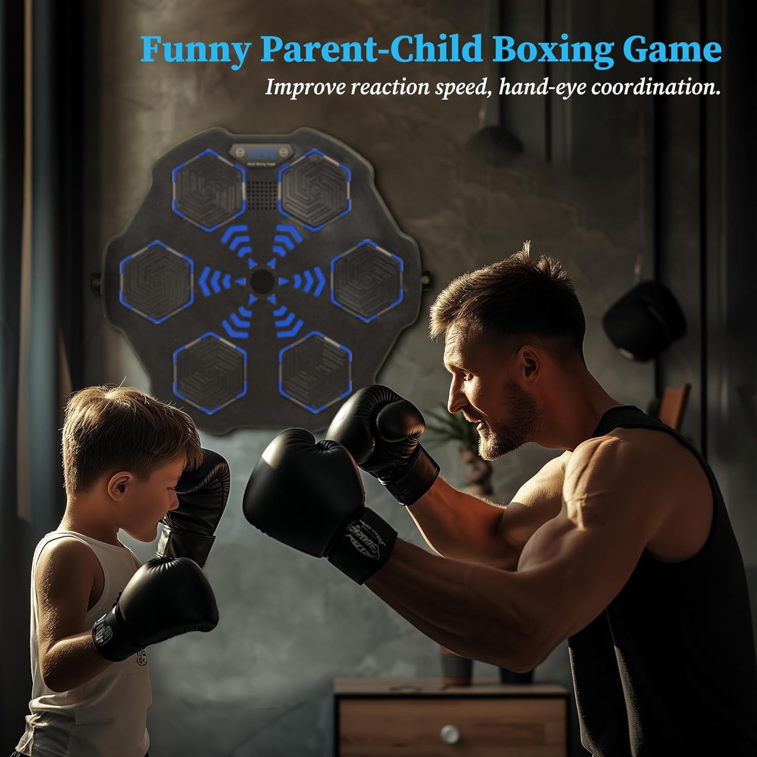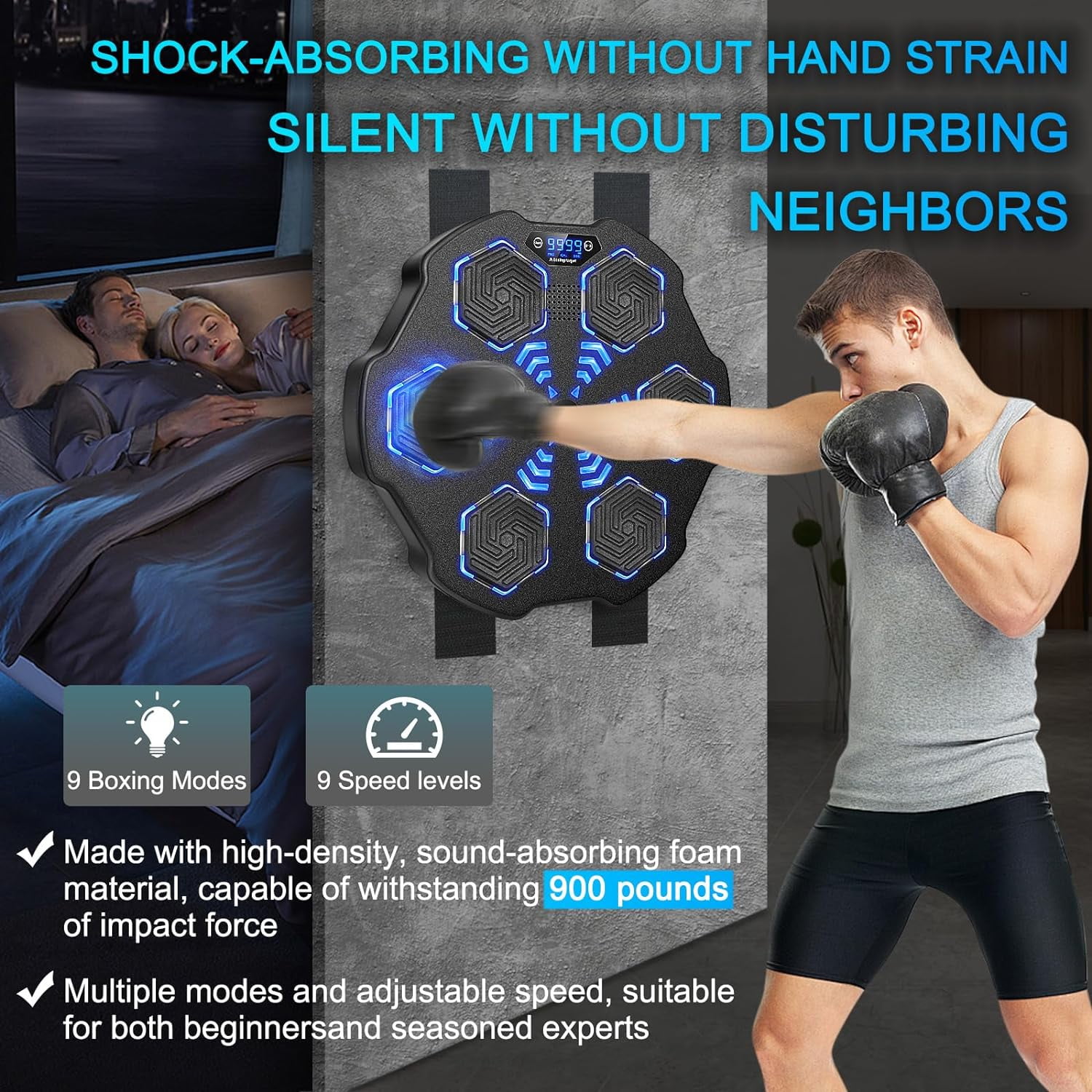 Digital Boxing Machine: Unleash your fitness fun with our smart boxing machine, merging music and exercise seamlessly. Revamp your fitness routine with our LED punch experience! Sync the music to your phone via bluetooth for a dynamic visual rush. Durability and Safety: Our wall-mounted boxing machine is crafted with EPS, which provides sturdy comfort during vigorous workouts. Larger soft striking pads prevent injuries during your workout! Easy Wall Installation: Our versatile smart music boxing machine offers flexibility to place around with its effortless wall mount option. Suitable for varied walls, and we provide you with 3 mounting methods, you can choose the right one according to your needs. Easy Wall Installation: Our versatile smart music boxing machine offers flexibility to place around with its effortless wall mount option. Suitable for varied walls, and we provide you with 3 mounting methods, you can choose the right one according to your needs. Great Gift Option: Searching for unique yet mindful present. Our music boxing machine provides endless amusement and fitness. Give the thrill of laughter, activity – perfect for your loved ones,family, buddies, and kids. 2024 New Music Boxing Machine, Upgraded Smart Bluetooth Music Boxing Parent-Child Games, Wall-Mounted Exercise Equipment for Home Exercise New Fitness(with Boxing Gloves) Smart Electronic Music Boxing Machine, Wall Mounted Boxing Machine Training Punching, Smart Boxing Target Workout Machine for Home,Indoor and Gym