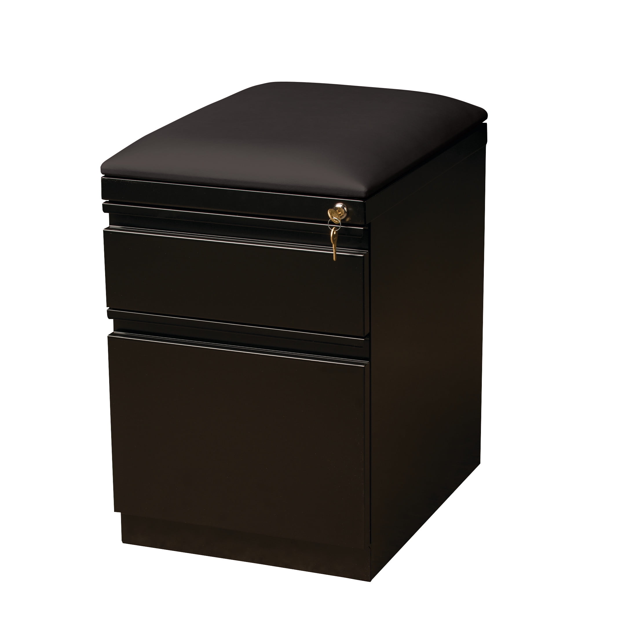 Commercial grade ball-bearing suspension allows fully loaded drawers to open with ease Durable, fully assembled steel construction with non-porous surface is easy to clean Includes easy to clean faux leather seat cushion Includes factory installed hidden casters for easy mobility Lock included to keep contents of all drawers secure Full-extension slides for easy access to drawer contents Includes counterweight to inhibit tip over Accommodates letter-size hanging files Full width J-pull handles Box-File drawer configuration Limited Lifetime Warranty Meets or exceeds ANSI-BIFMA standards Greenguard Gold Certified Hirsh 20 inch Deep Letter Width Mobile Pedestal File Cabinet 2 Drawer Box-File with Seat Cushion, for Home and Office, Black / Black