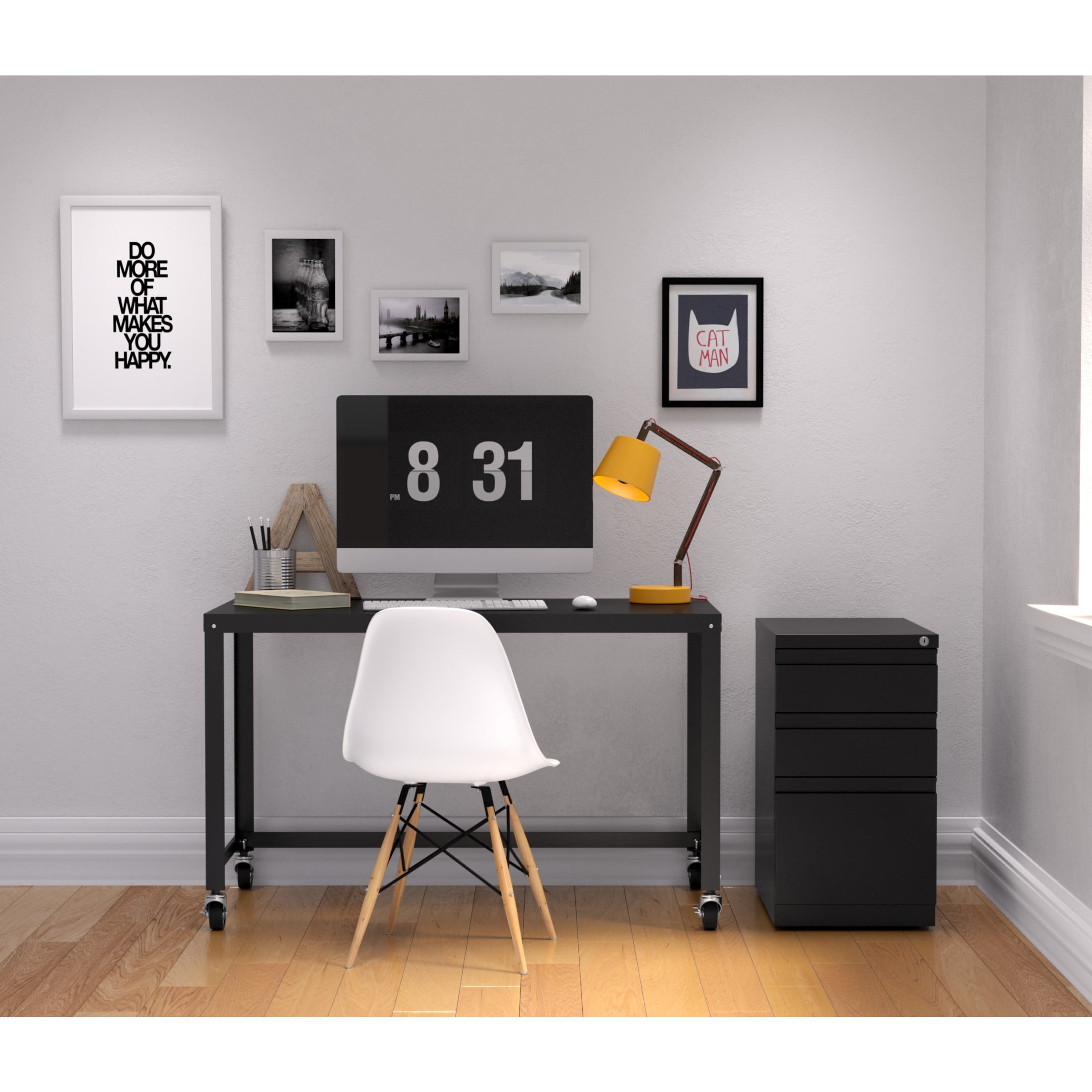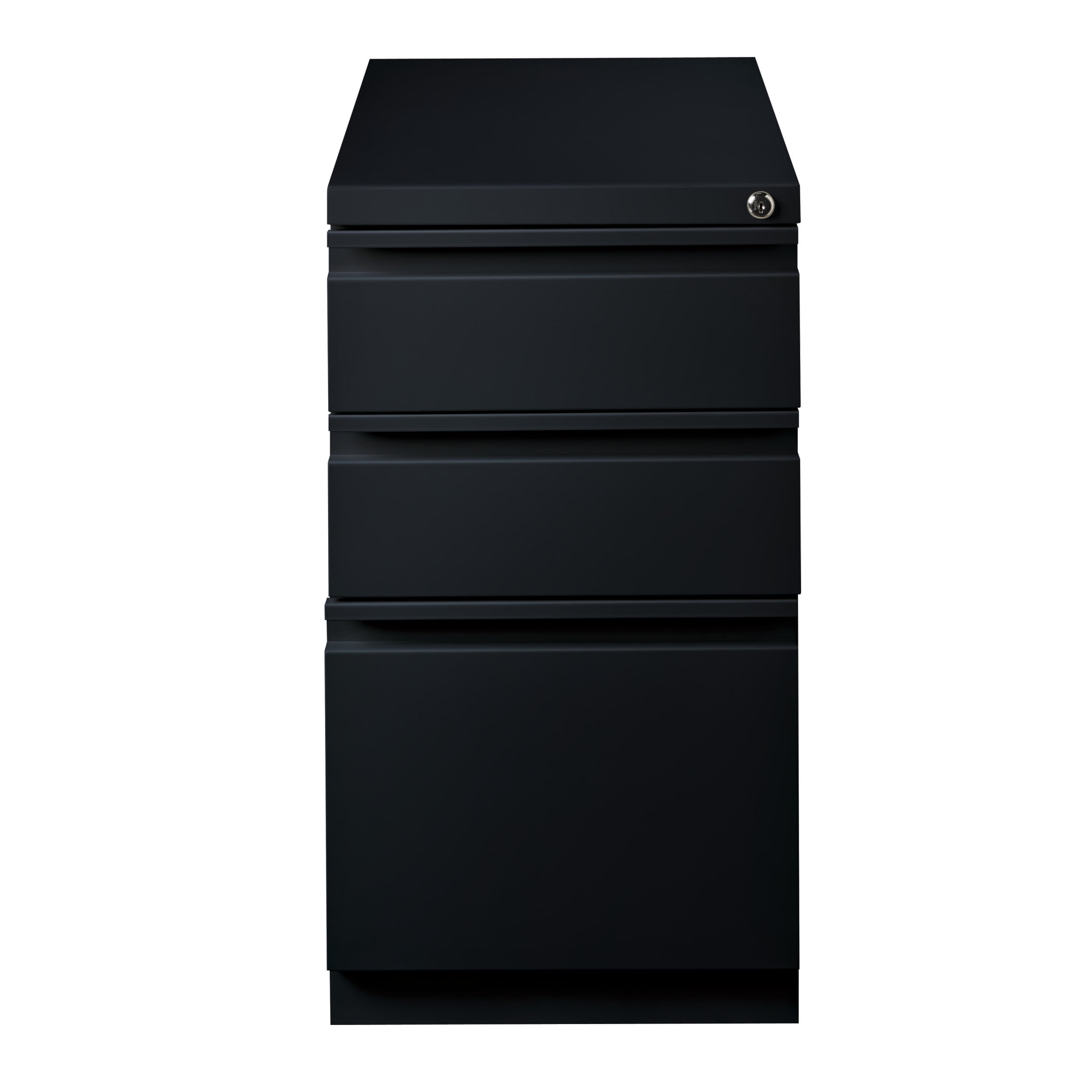 23-inch deep Mobile Pedestal Files with a 3-drawer box-box-file drawer configuration are designed to support the demand of today’s office. Durable, fully assembled steel construction with non-porous surface is easy to clean. These commercial grade mobile pedestals come standard with factory installed hidden casters, full extension drawers, counterweights, and a core-removable lock for security. The file drawer accommodates letter-size hanging files. The ball-bearing suspension ensures a smooth and quiet drawer performance. Extended fronts with full-width drawer pulls provide a sleek and contemporary design. Available in multiple colors to enrich your workspace. 27.75″ height allows these units to roll under most work surfaces. Limited Lifetime Warranty. Unit meets or exceeds ANSI-BIFMA industry standards. Greenguard Gold Certified. Color: Black