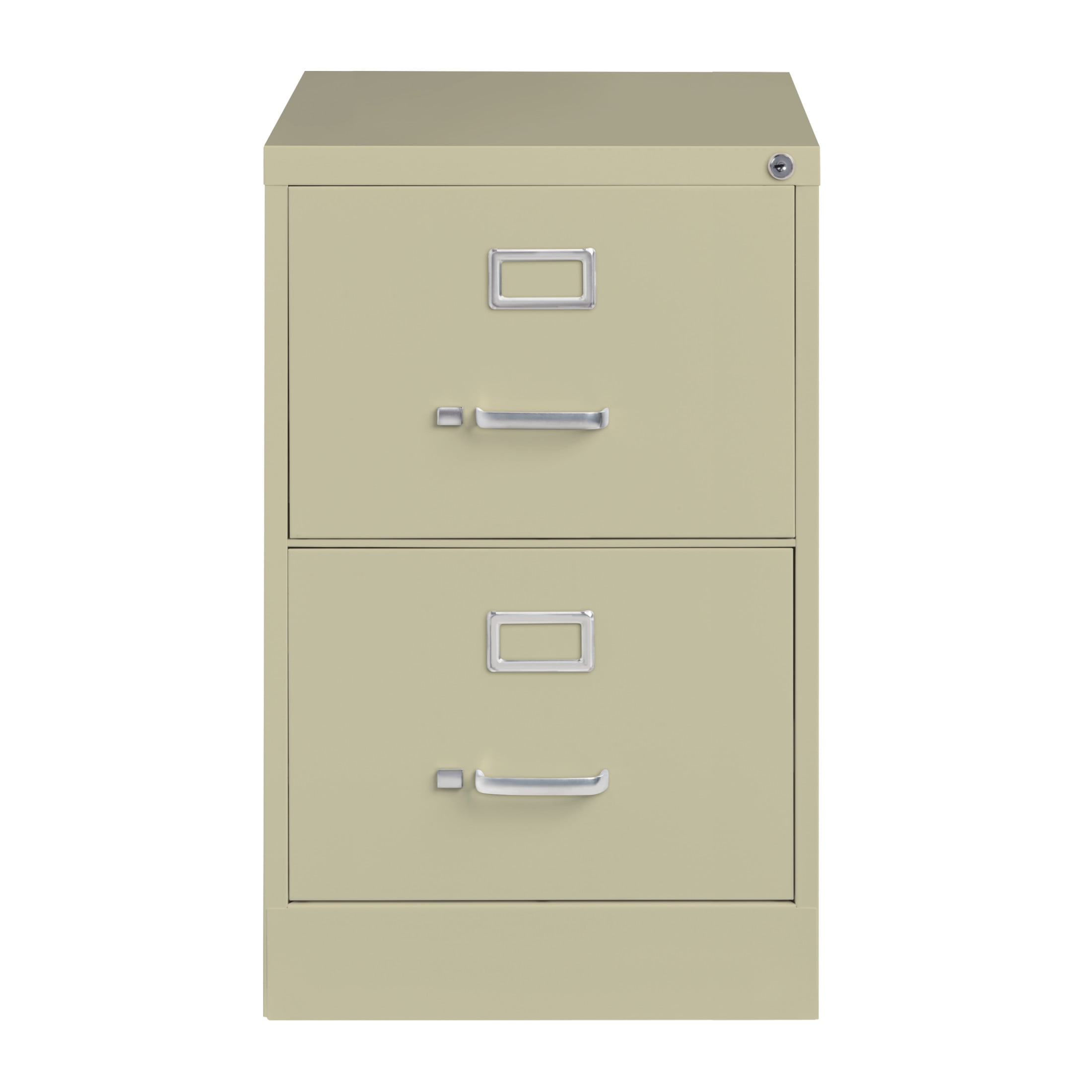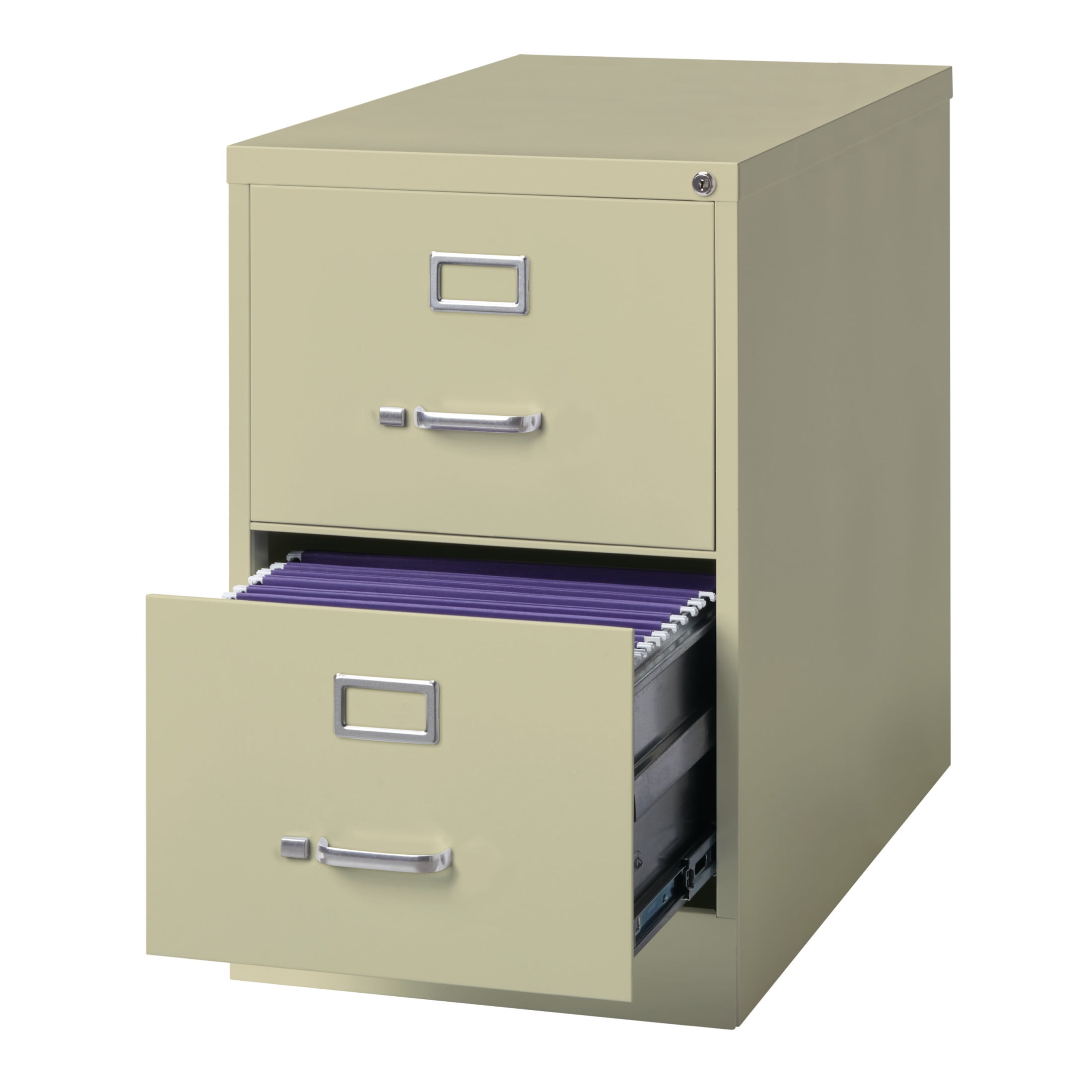 25″ deep metal, 2 drawer, legal width, commercial grade vertical file cabinets are perfect for business, educational, or personal offices. These cabinets feature a classic design and are constructed with high quality durable materials that are suitable for heavy-duty use. Ships fully assembled and is ready to accept legal width hanging file folders. Smooth surface is easy to clean. Each drawer includes full extension ball-bearing slides for smooth drawer action. Even fully loaded, these drawers open with ease. Adjustable follower wires keep files upright. The included core-removable lock allows cabinets to be keyed alike. Designed to meet or exceed ANSI-BIFMA industry standards for performance and workmanship. Made with 28% total recycled content. Backed by a Limited Lifetime Warranty. Color: Putty
