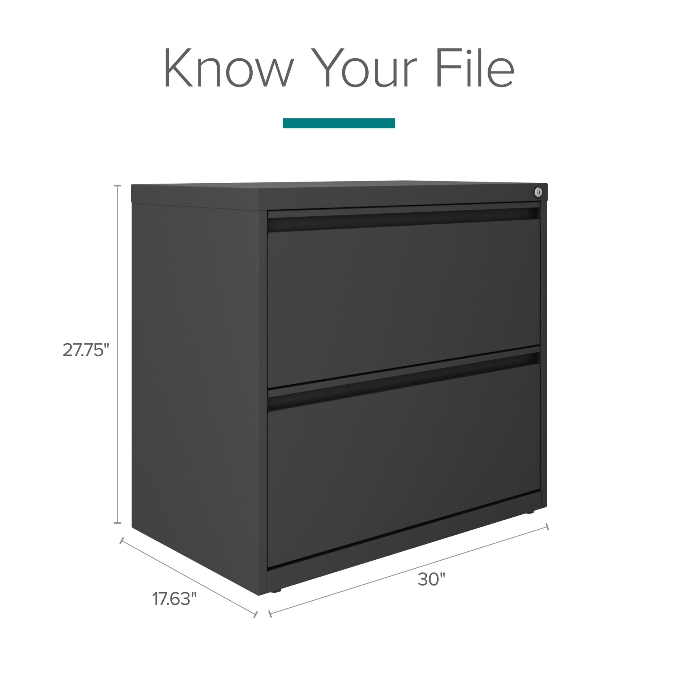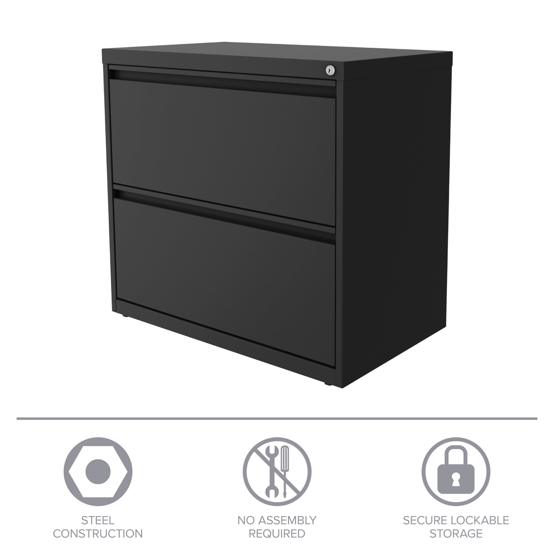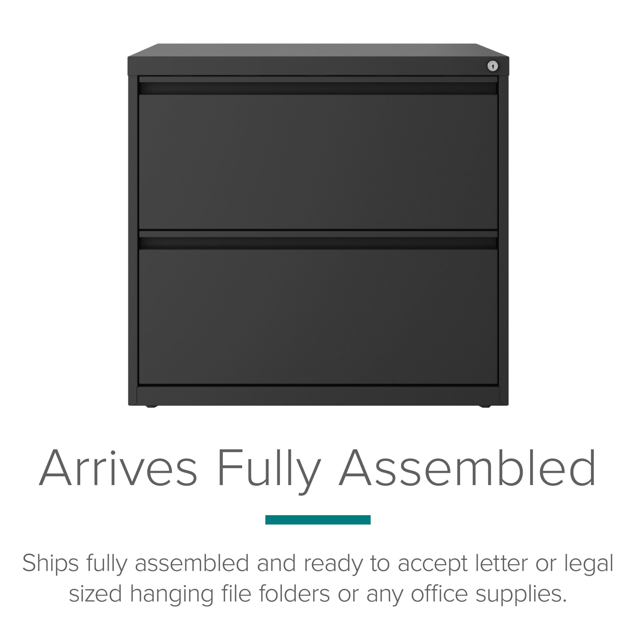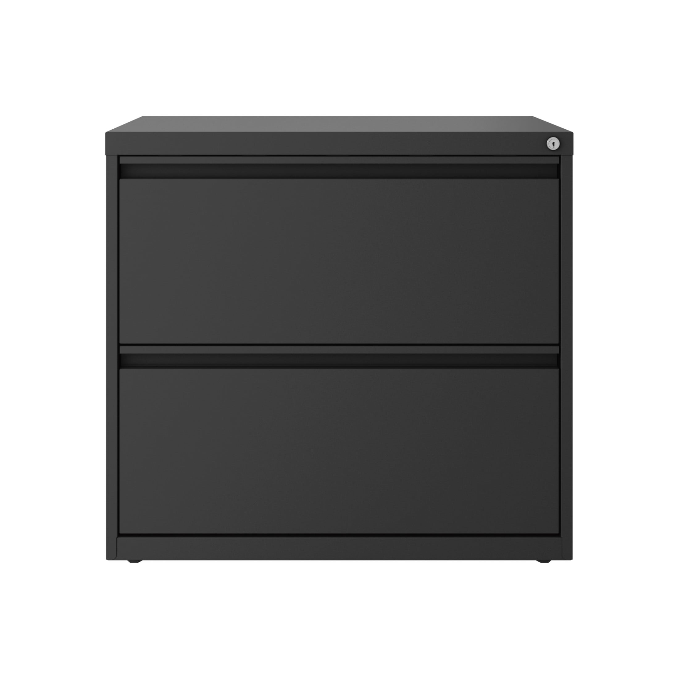 File cabinet lock secures both drawers Durable, fully assembled steel construction with non-porous surface that is easy to clean and disinfect Smooth action ball-bearing drawer slide suspension Interlock allows only one drawer to open at a time Full high-side drawers provide storage for other office essentials Designed for letter width hanging files Eco-friendly, containing up to 30% recycled material GREENGUARD Gold certified Hirsh 30 inch Wide 2 Drawer Lateral 101 File Cabinet for Home or Office, Charcoal