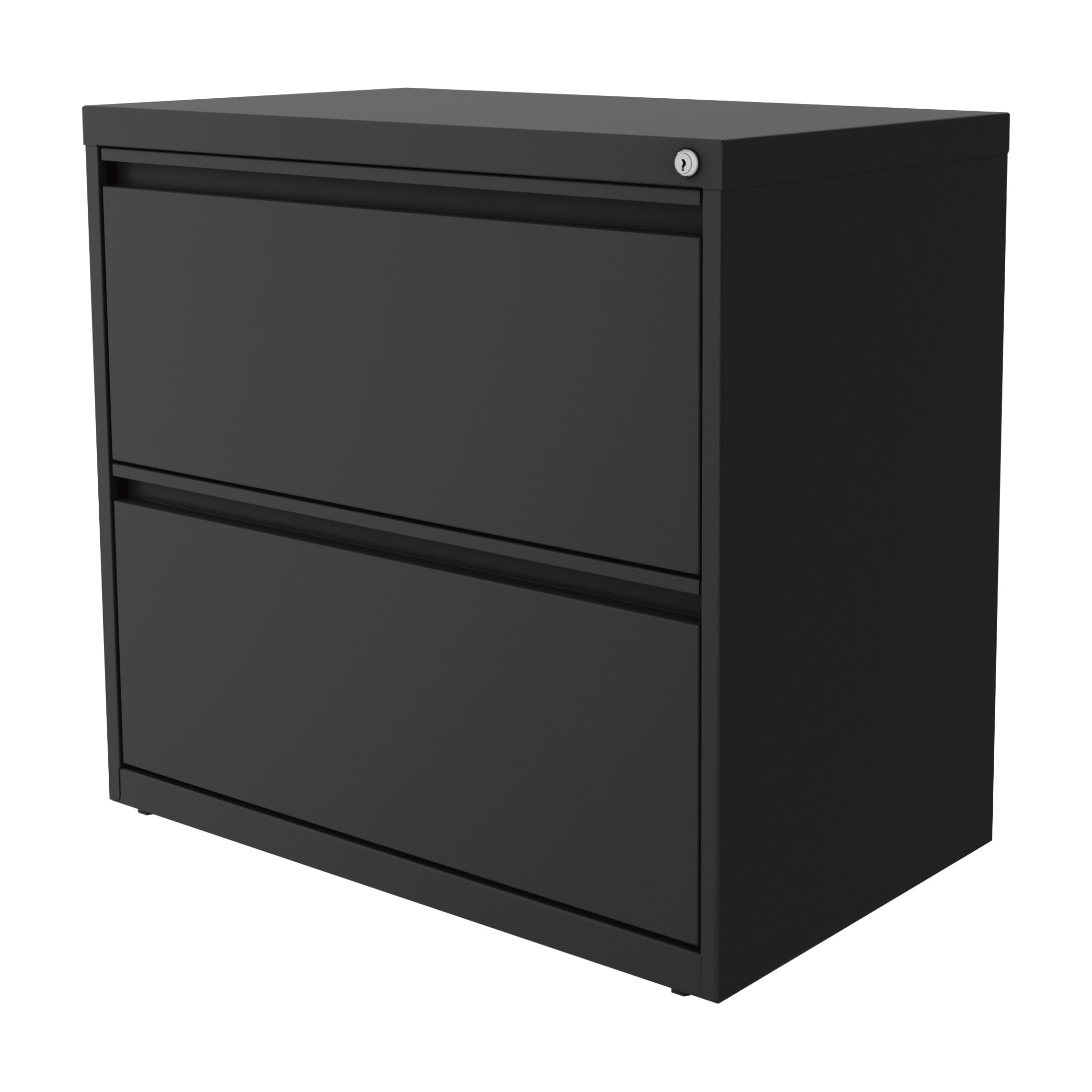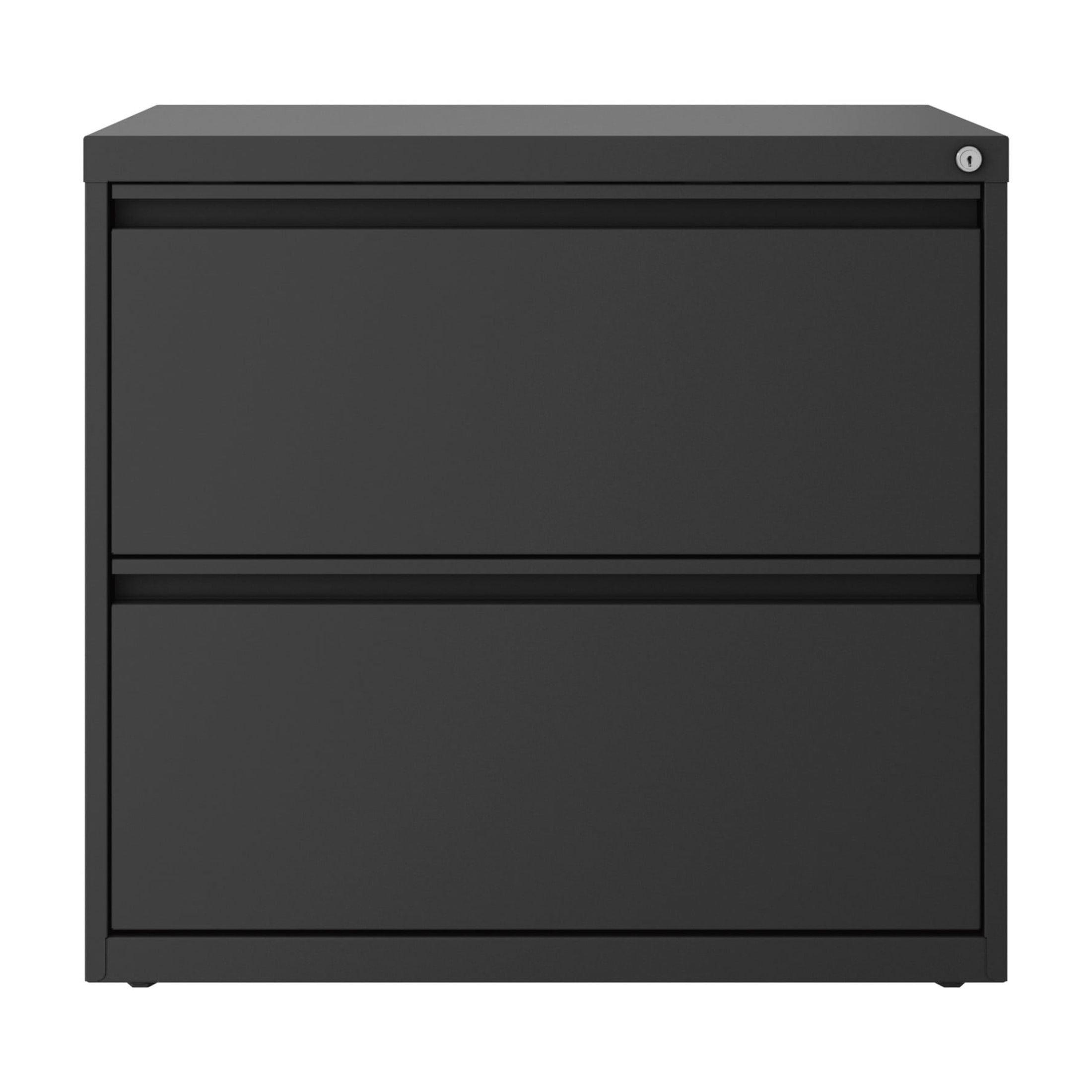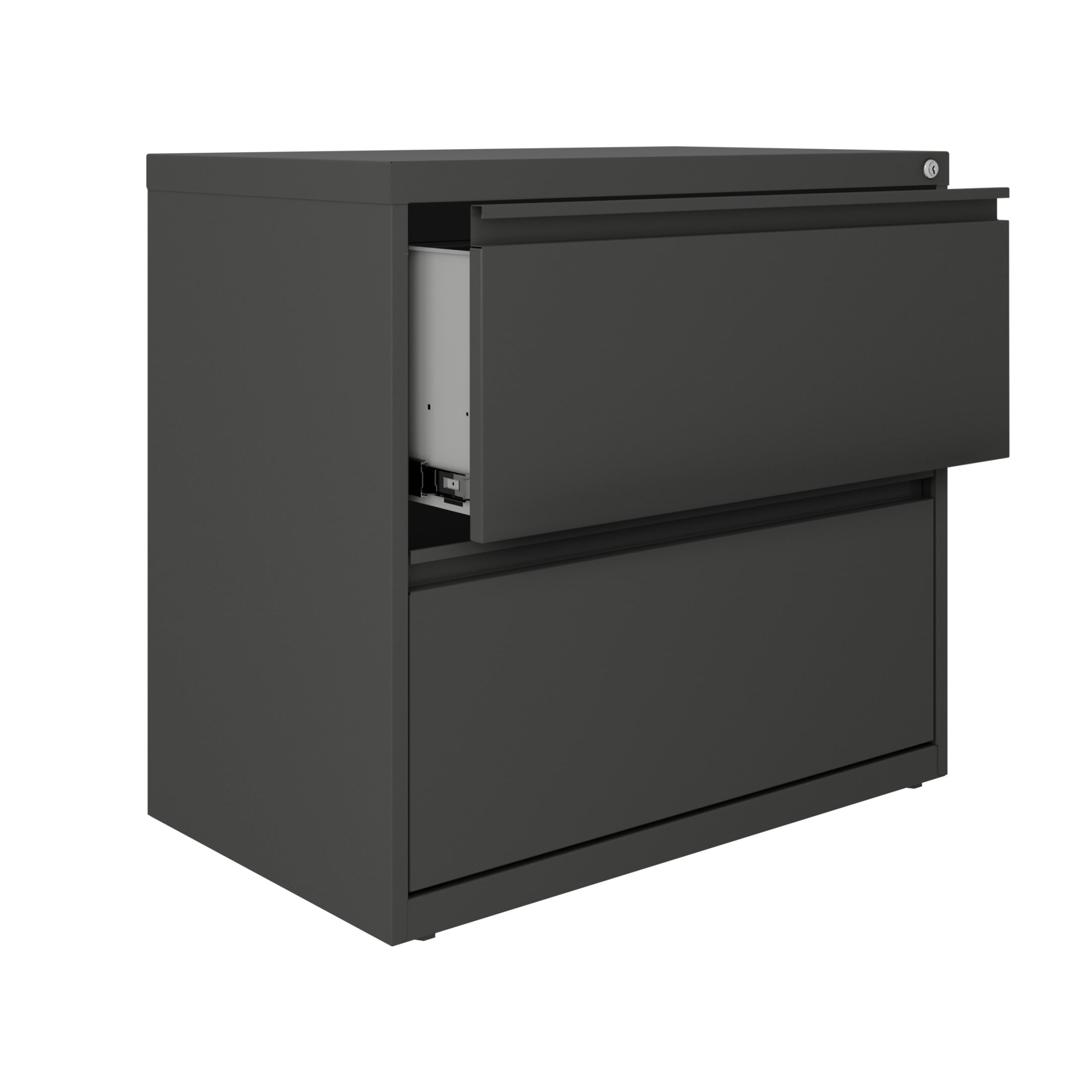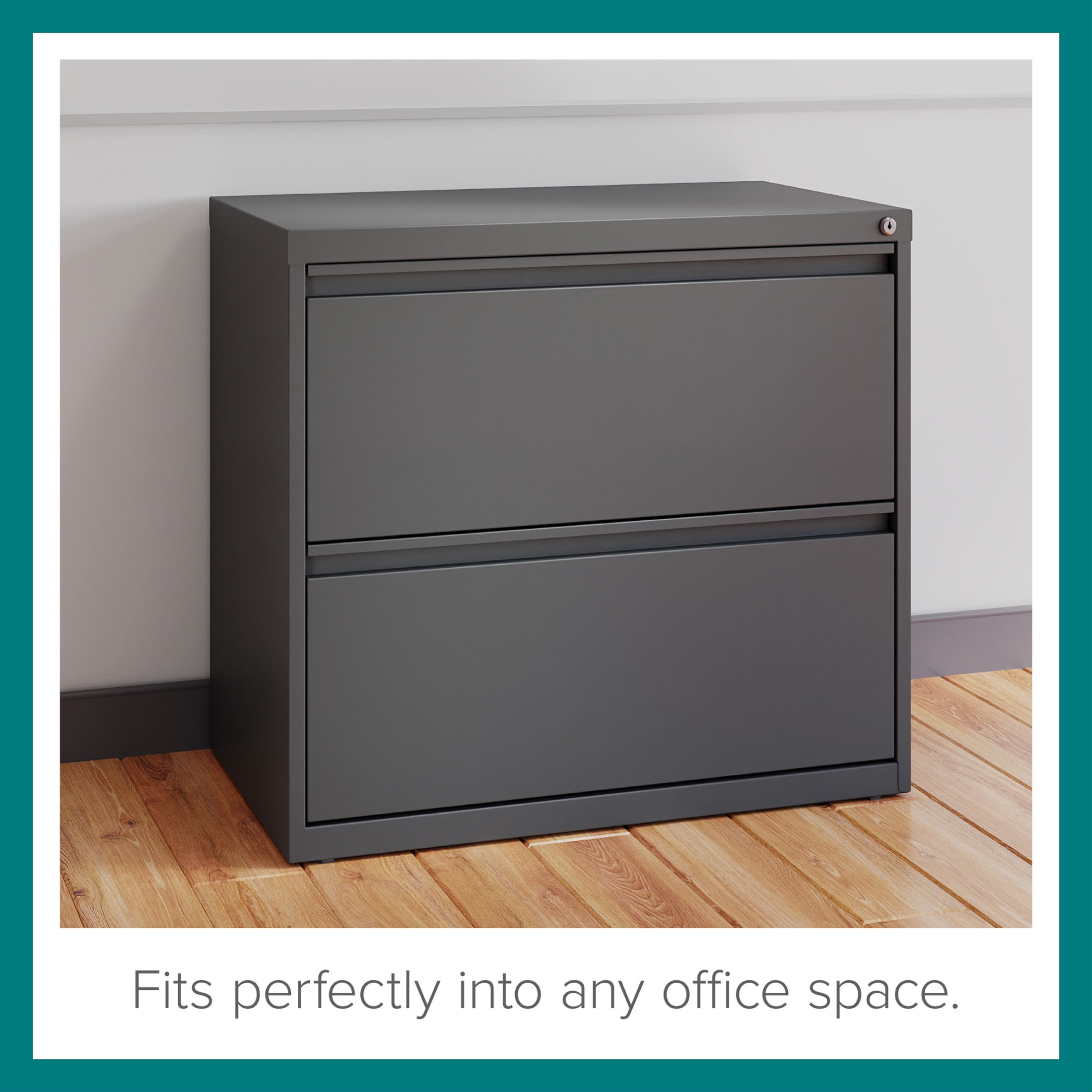 The Two Drawer Lateral File Cabinet is the perfect storage and organizational solution for files, office supplies, and accessories for your home or professional office. This metal filing cabinet features steel construction for long life and heavy-duty use. Each of the two drawers features high sides to accommodate letter or legal sized hanging files. Patented drawer slides allow for easy operation, even when full. In addition, you can keep your files and possessions secure by using the built-in filing cabinet lock. The painted steel surface is non-porous and easy to clean. Bring organization and function to your home or office with this classic filing cabinet. Color: Charcoal