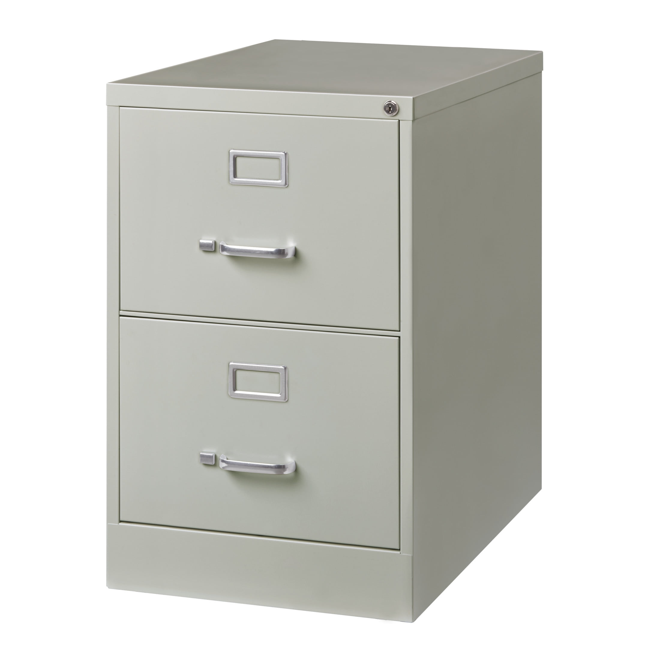 26.5″ deep metal, 2 drawer, legal width, commercial grade vertical file cabinets are perfect for business, educational, or personal offices. These cabinets feature a classic design and are constructed with high quality durable materials that are suitable for heavy-duty use. Ships fully assembled and is ready to accept legal width hanging file folders. Smooth surface is easy to clean. Each drawer includes full extension ball-bearing slides for smooth drawer action. Even fully loaded, these drawers open with ease. Adjustable follower blocks keep files upright. The included core-removable lock allows cabinets to be keyed alike. Designed to meet or exceed ANSI-BIFMA industry standards for performance and workmanship. Made with 28% total recycled content. Backed by a Limited Lifetime Warranty. Color: Light Gray