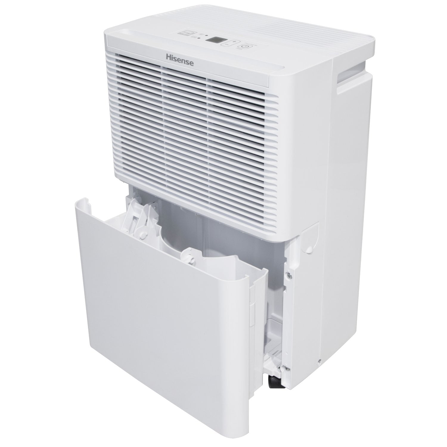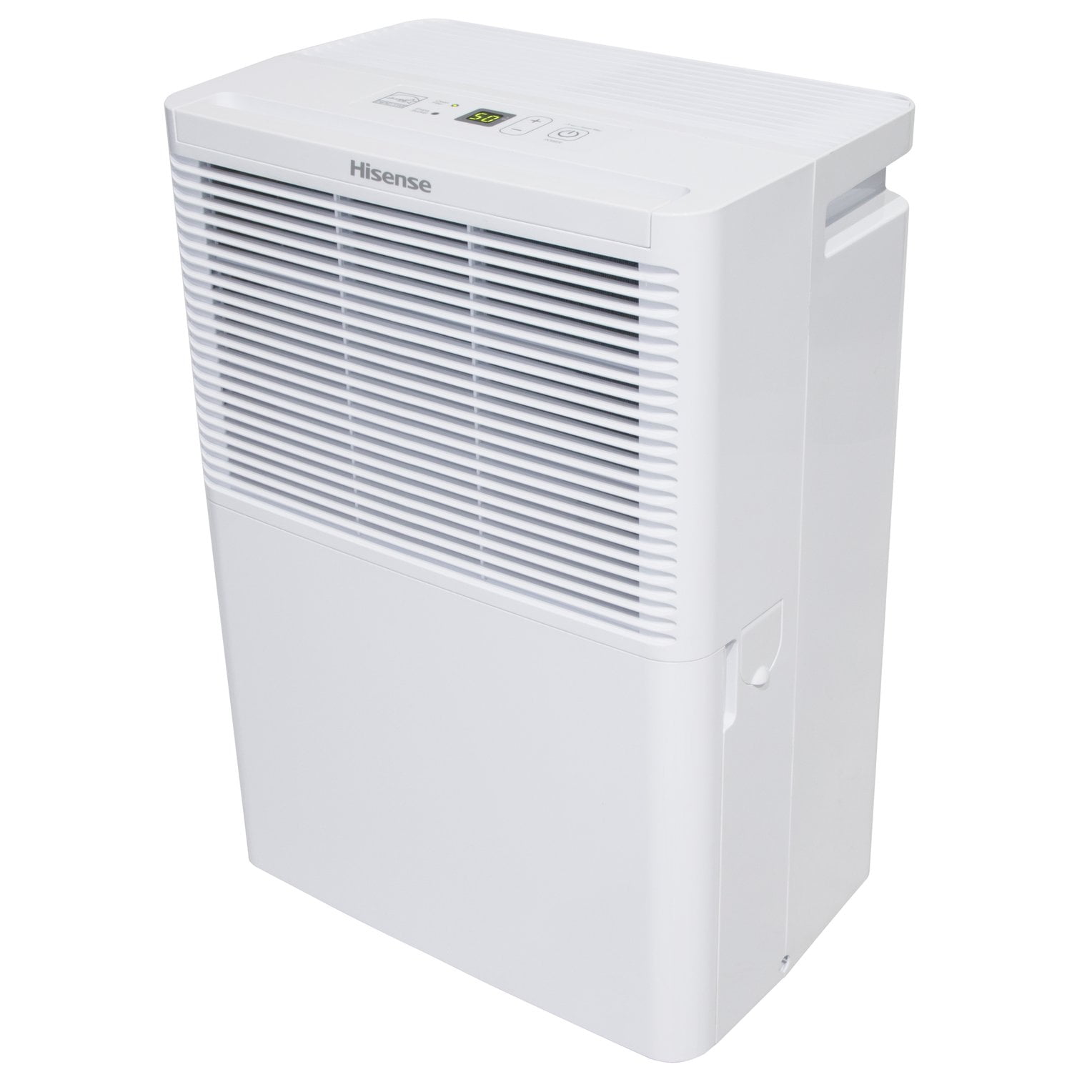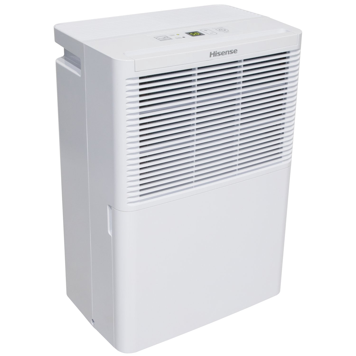 Hisense 25 pt 1500 sq ft Dehumidifier – Energy Efficient, Automatic Shut Off, Adjustable Humistat Energy Star rated 25-pint portable dehumidifier Designed for rooms up to 1500 sq. ft Slide-out water bucket with an 8.5-pint capacity Automatic shut off feature when the bucket is full Digital electronic control with LED display for easy operation