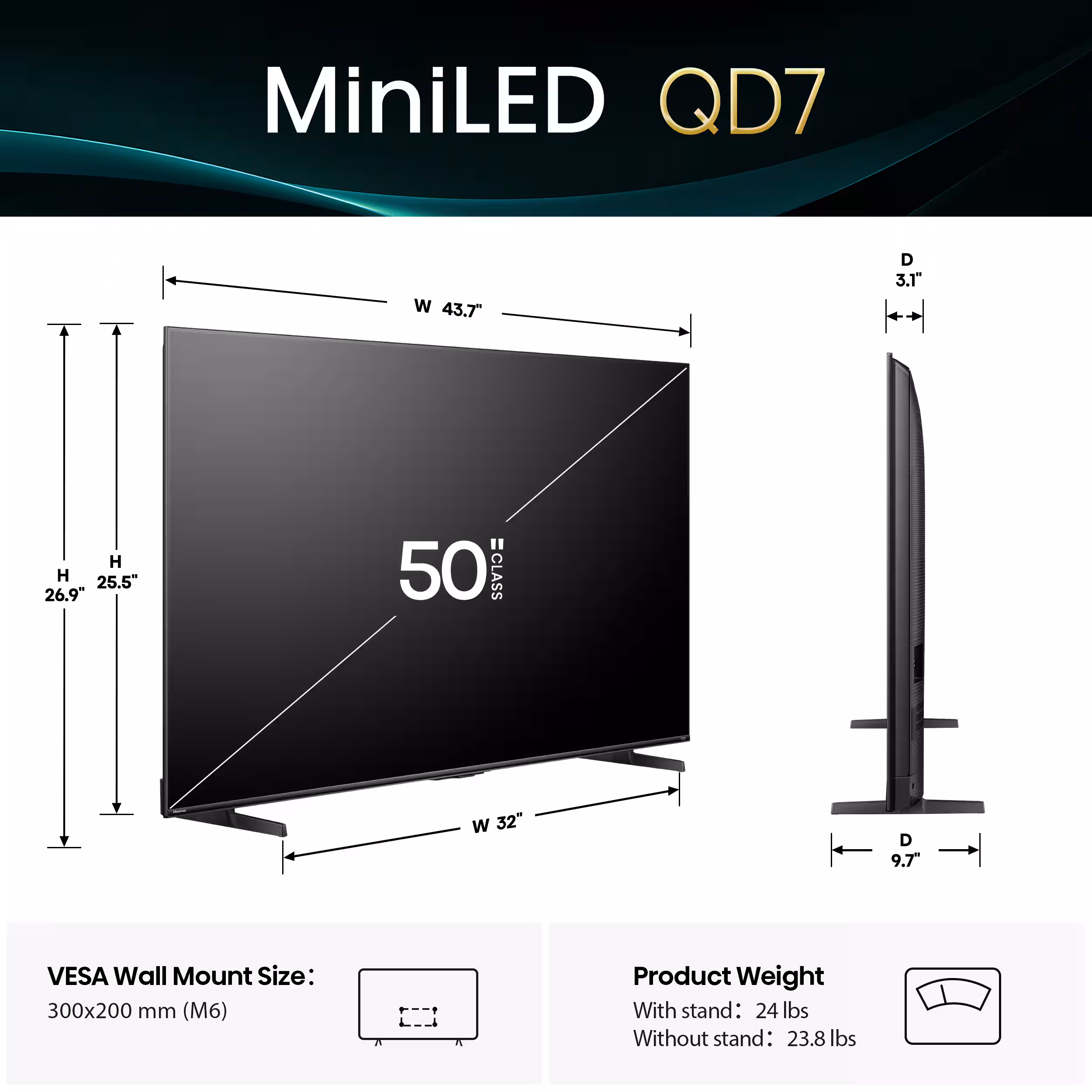 • Product Name: 50″ Class QD7 Series Mini-LED QLED 4K UHD Smart Fire TV (2025)