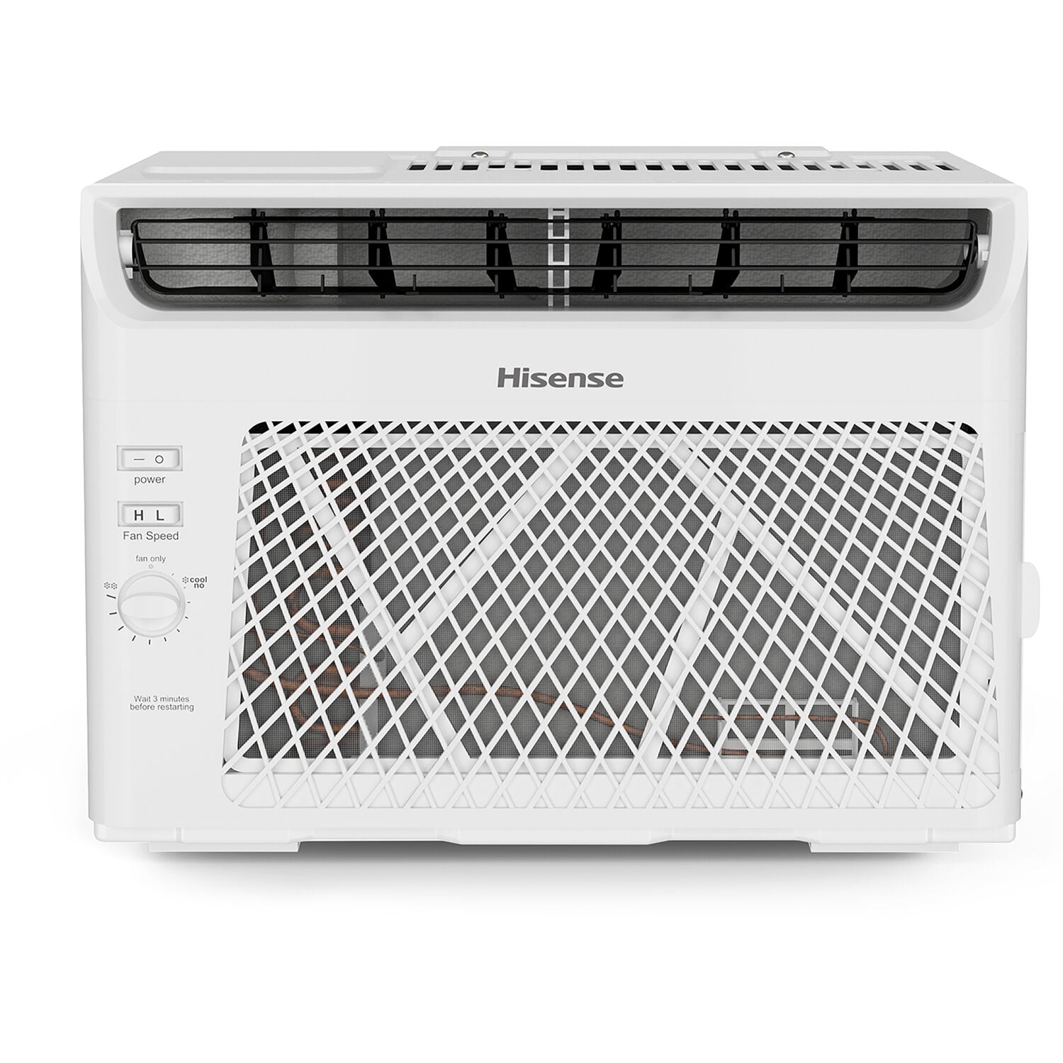 5,000 BTU window air conditioner Cools a room up to 150-sq. ft. Mechanical rotary controls 2 fan speeds Washable filter for optimal efficiency 2-way air louvers Included installation kit Temperature range from 61 to 86 degrees F