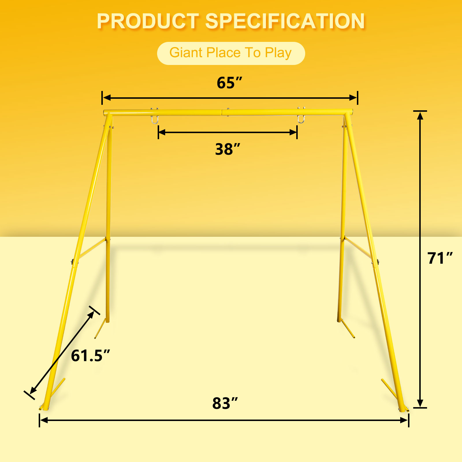 Hishine Swing Stand for Porch Outdoor Heavy Duty Swing Frame, Full Steel Metal Frame with 4 Ground Pegs, 71″ Height Holds Up to 550lbs (Swing NOT Included)