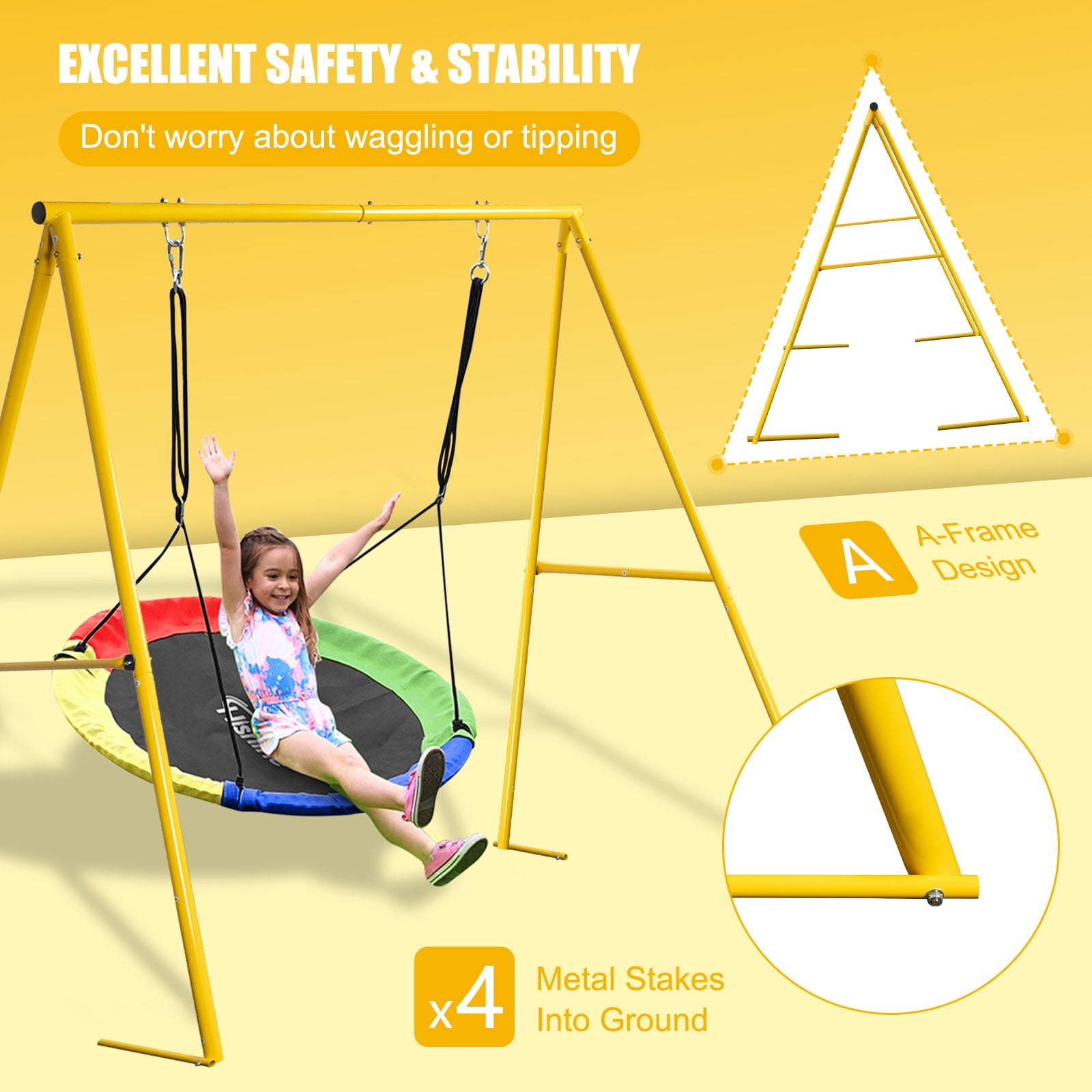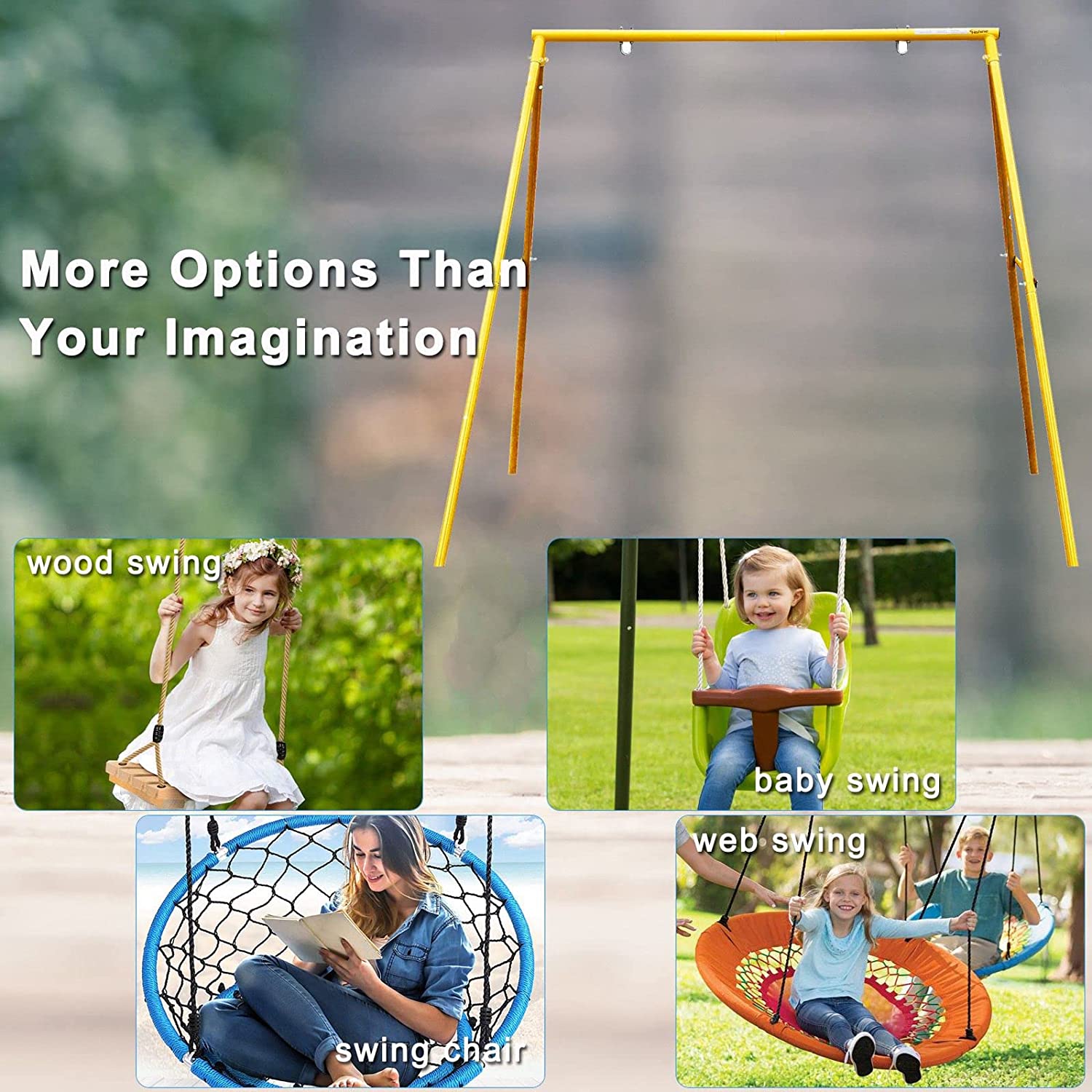 Welcome to our Swing Set store! We are very proud to introduce our large-size courtyard autumn. It is a product that can withstand the maxi 440LBS weight, suitable for child and teen aged 4-16. This Swing Set is made of high -quality materials, which has been strictly tested and certified to ensure its stability and safety. Its powerful load -bearing ability and large -sized design can meet the needs of children to play outdoors and bring them a safe and happy experience. Our swing set also has a comfortable seat design, and the soft and comfortable cushion can bring good comfort to children. In addition, its assembly is also very simple, only a few simple steps can be completed.