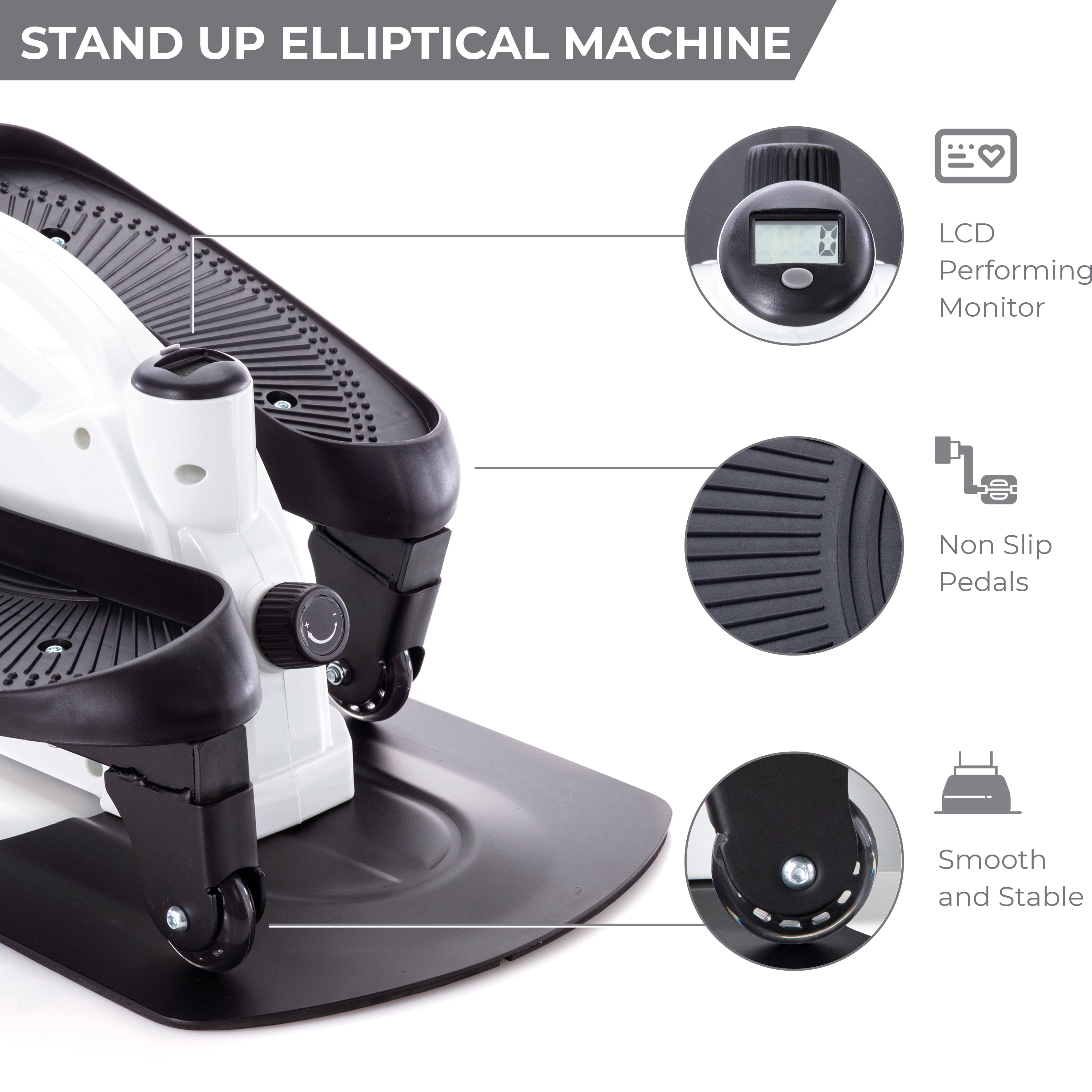 Hit Notion Compact Elliptical Fitness Stand up and Sit Down Step Machine, Portable Mini Stepper Exercise, While Seated, Handle, Digital Readout, All the Equipment for a Great Workout in White and Black