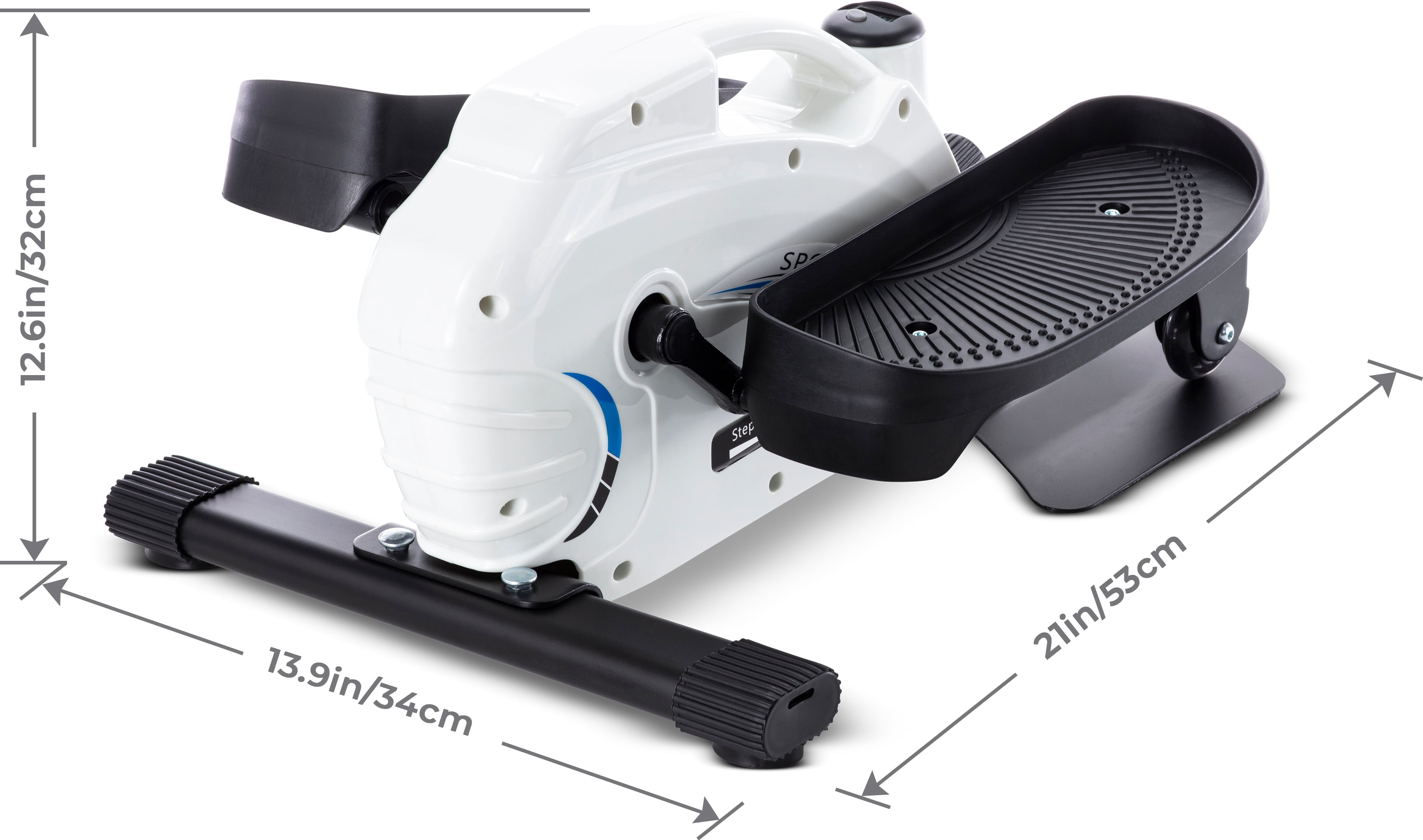 Turn on your tunes and step up to fitness: Even exercise haters enjoy using the Stand Up Elliptical machine. You’ll be surprised how pleasant stepping to your favorite playlist can be when it’s so easy. It’s fun to use the digital readout to monitor your progress and increase the resistance as your body adjusts to each exercise level. If you don’t feel comfortable standing, you can use the mini elliptical while you are seated and still enjoy movement that improves circulation and general health. When you use the mini stepper, you’ll discover that life is better when it includes a little motion, and exercise is the best when it’s so easy. Get started on the path to fitness today. Get Your Steps In: Even when you can’t get to the gym the Stand Up Elliptical lets you get those steps in. This is a completely portable piece of exercise equipment that makes it easy to get the workout you need to stay healthy. Sturdy, Smooth, and Quiet: This stepper is light enough to carry but sturdy enough to provide the stable platform you need for a good workout. Don’t worry about disturbing family members or roommates. The mini stepper is smooth and quiet. A Full Body Workout: Grab some hand weights, or not, and get a full-body aerobic workout right in your own living room. Follow your progress on the digital readout. Color: Black and White Dimensions: 13.90 x 21.00 x 12.60 Inches Weight: 29.2 lbs.