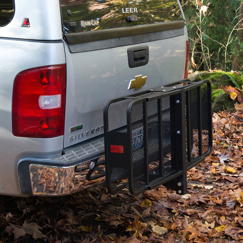 Fits 2-inch receiver hitches Flips up and out of the way when not in use Cargo platform measures 48 inches long, 20 inches wide and 6 inches Assembly tools included Carry all your extra gear with you at all times! Holds up to 500 lbs