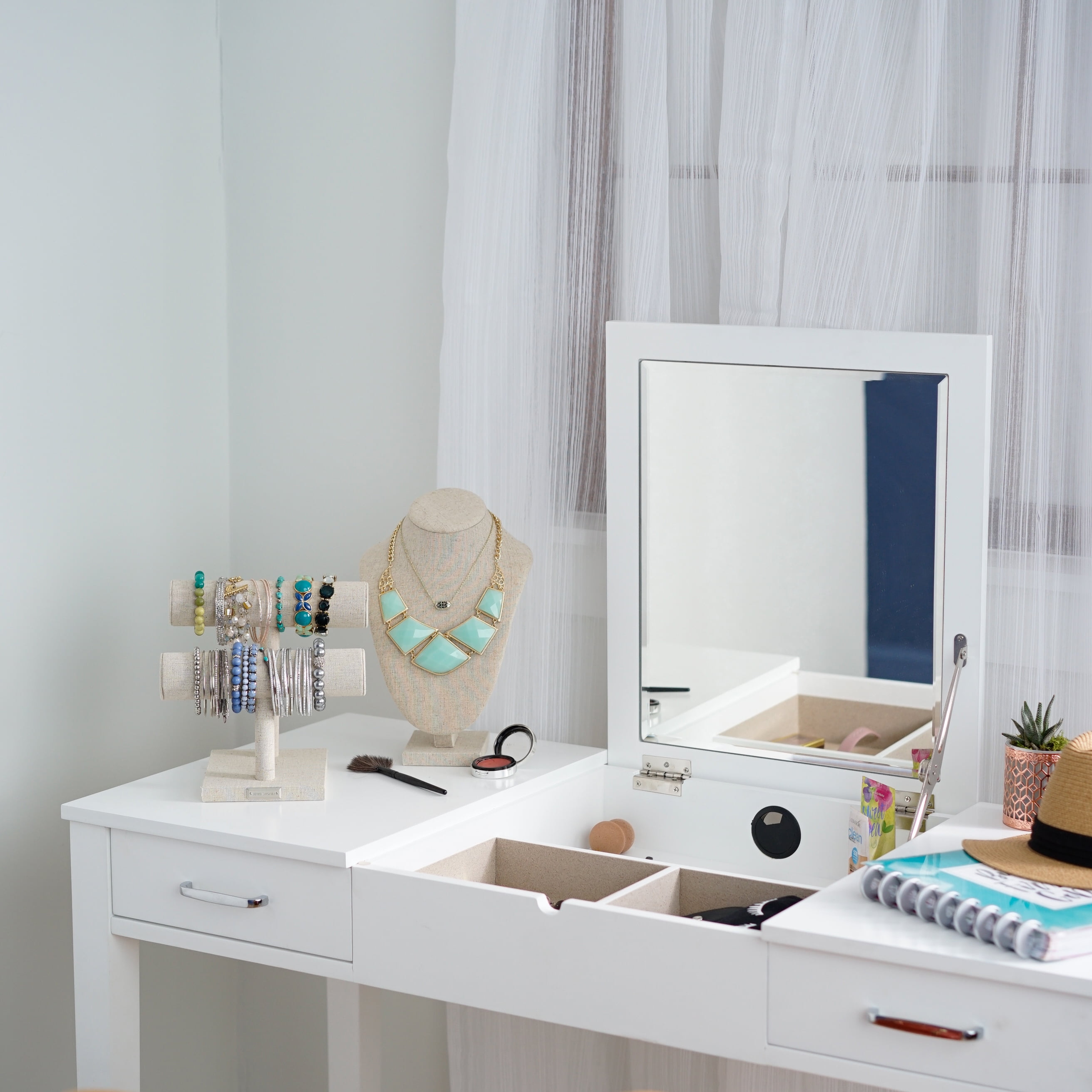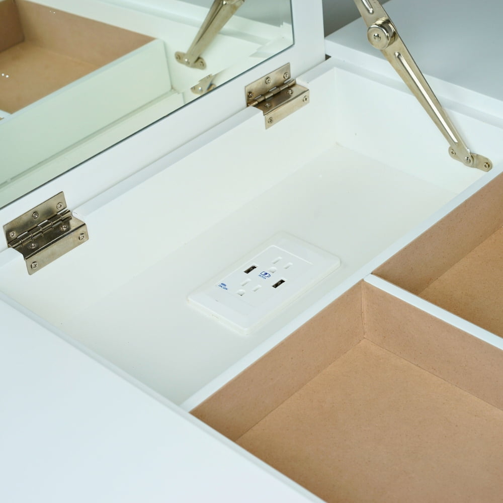 Hives & Honey Ainsley Vanity Desk with Make-Up organizer & integrated USB & power outlet, White