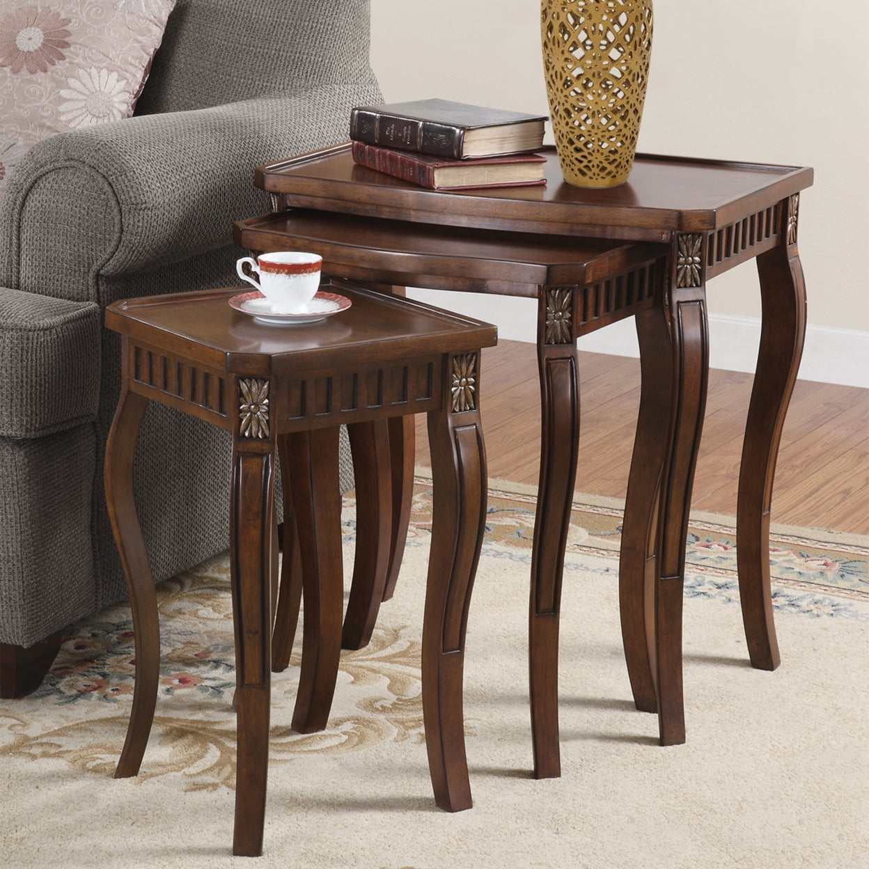Antiqued turquoise finish with antiqued brass drawer pulls. Hives and Honey Daphne Oval Glass Jewelry Chest for Women – White Includes vanity mirror, 10 ring rolls and 4 divided compartments Features 5 pull-out drawers and two side doors that open to reveal necklace hooks Rounded design with etched floral flourishes