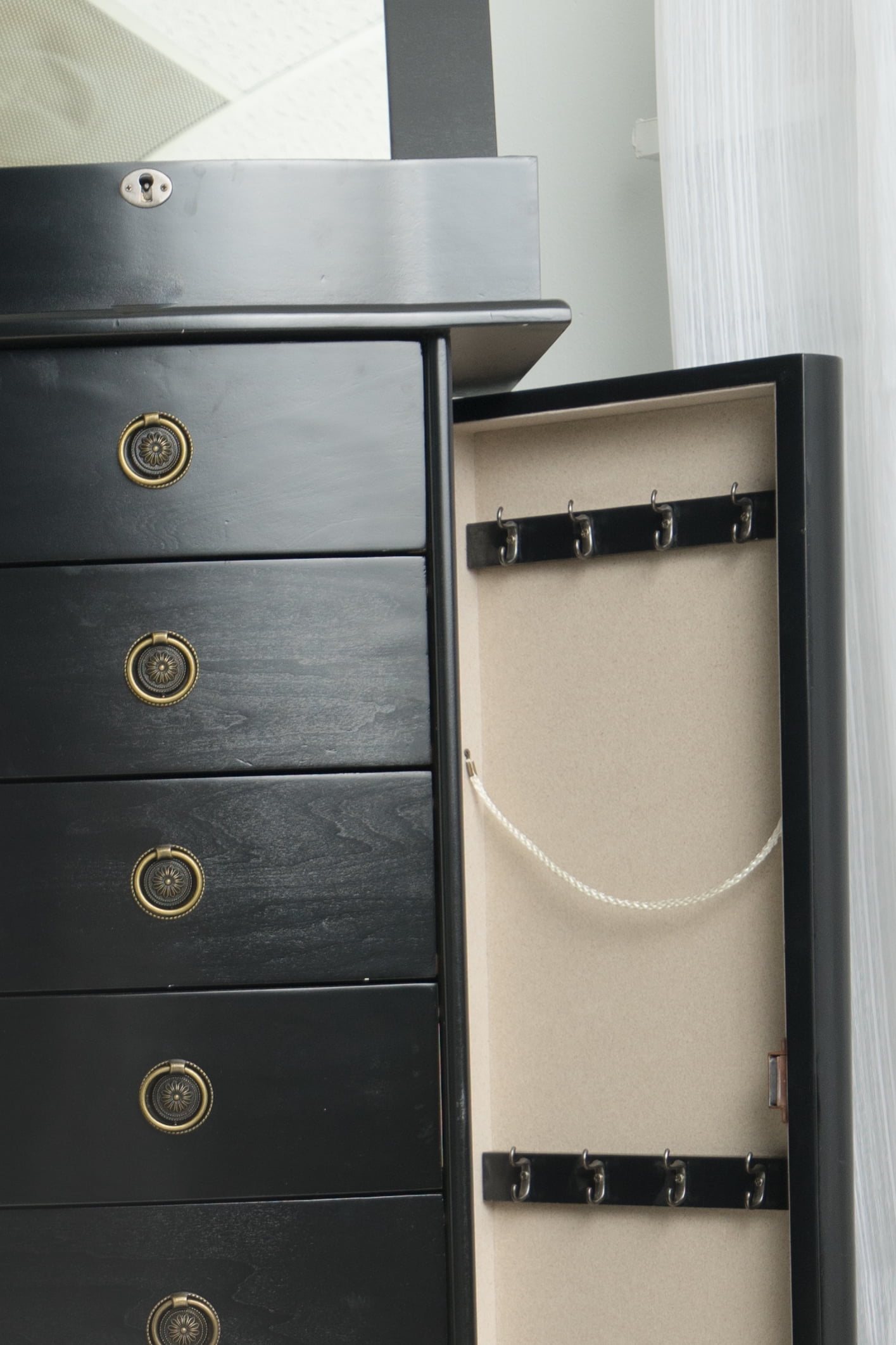 Hives and Honey Nora Traditional Jewelry Armoire with Locking Compartment and Ample Storage, Black