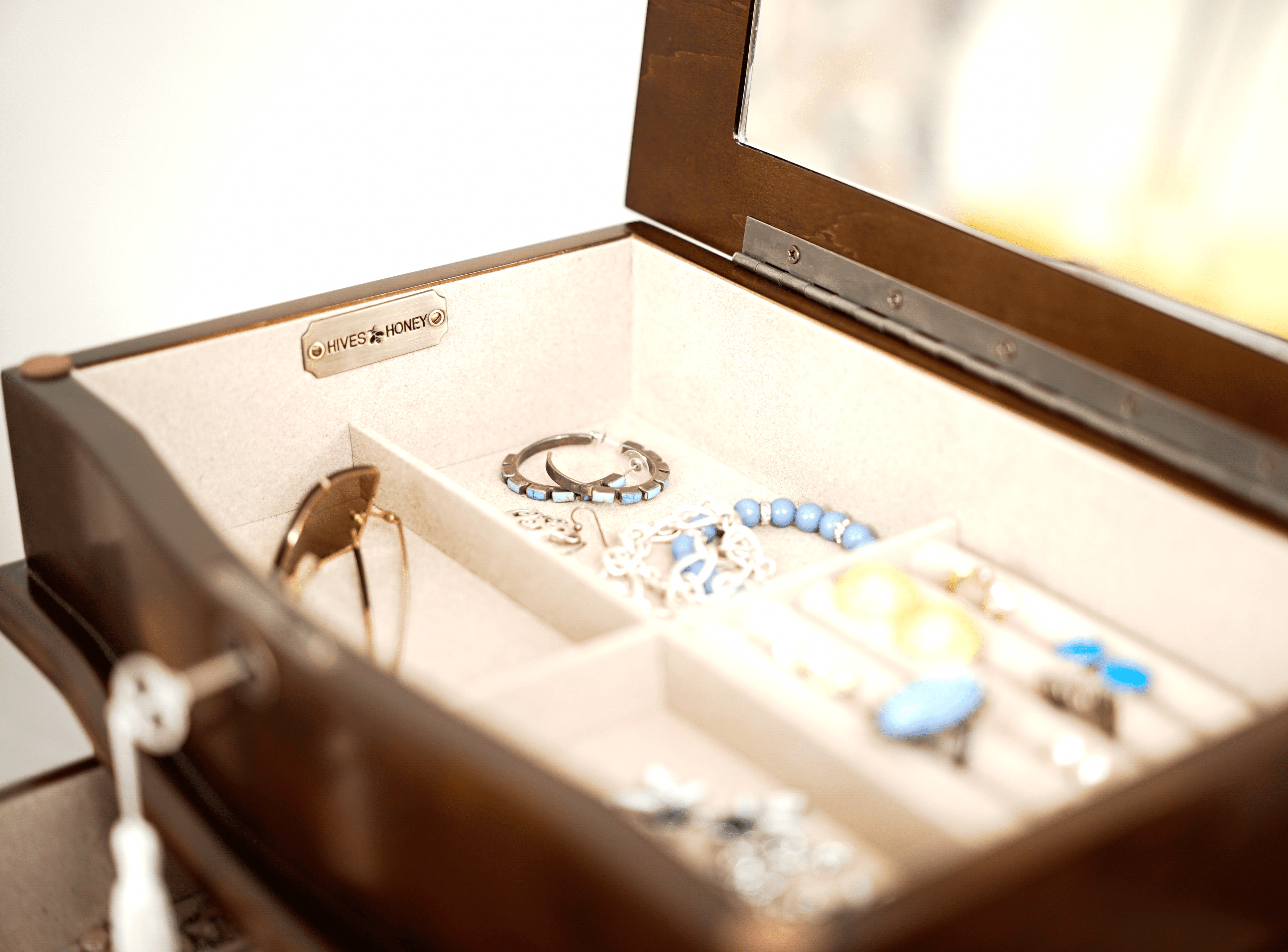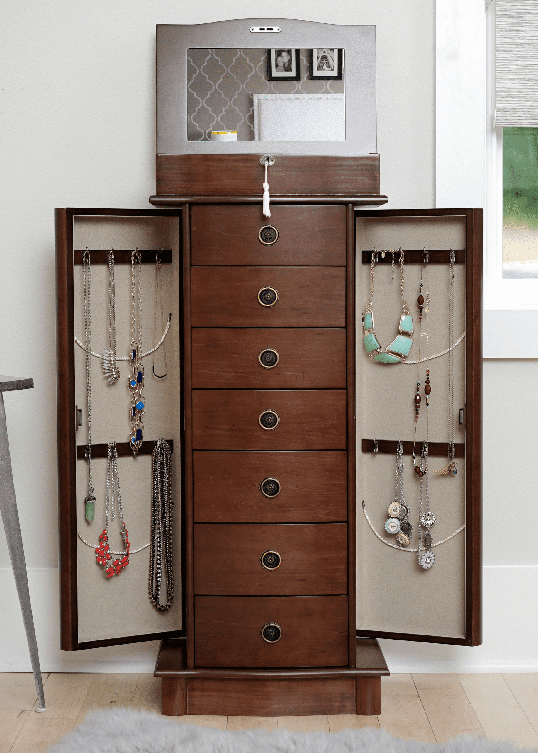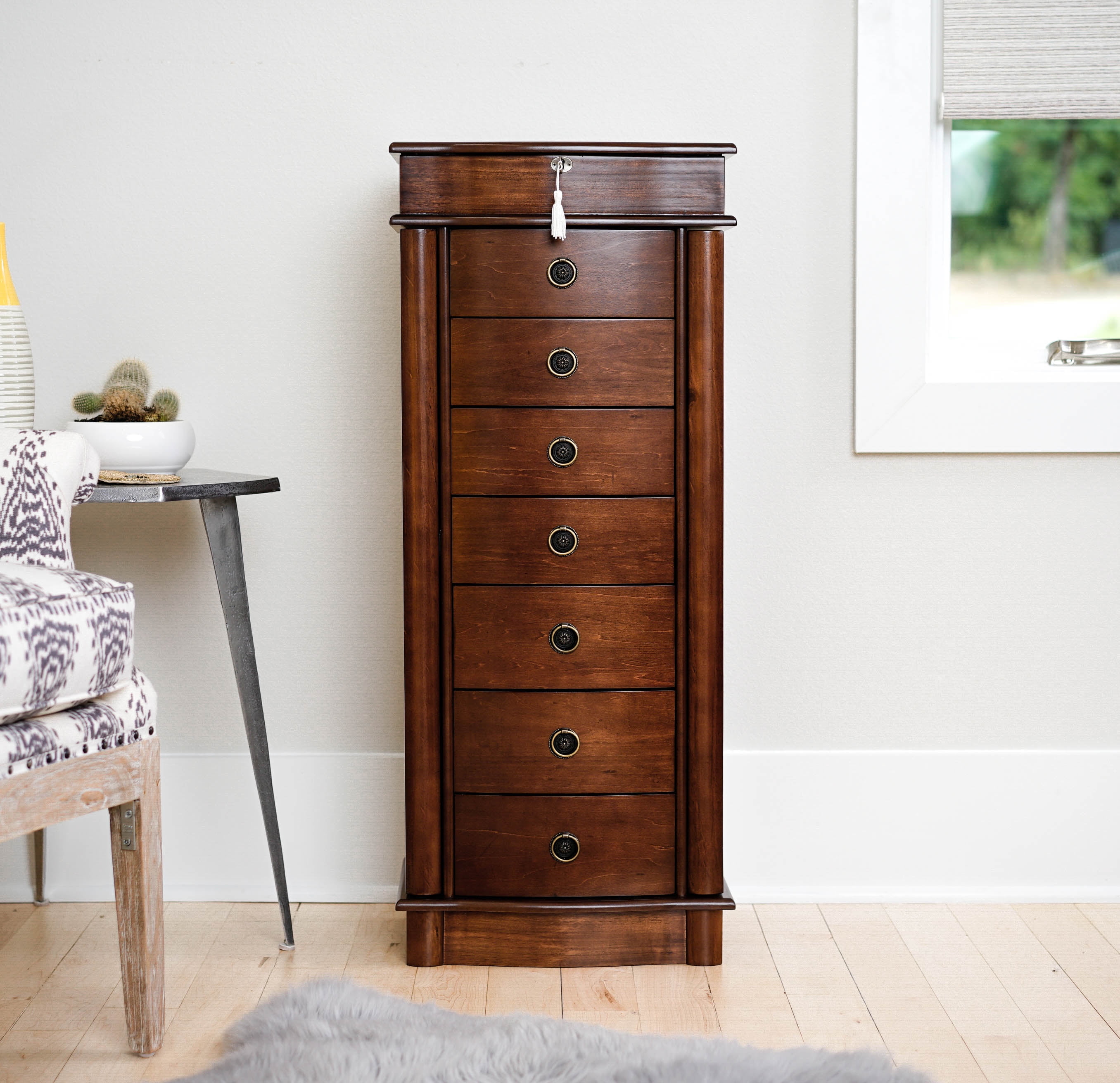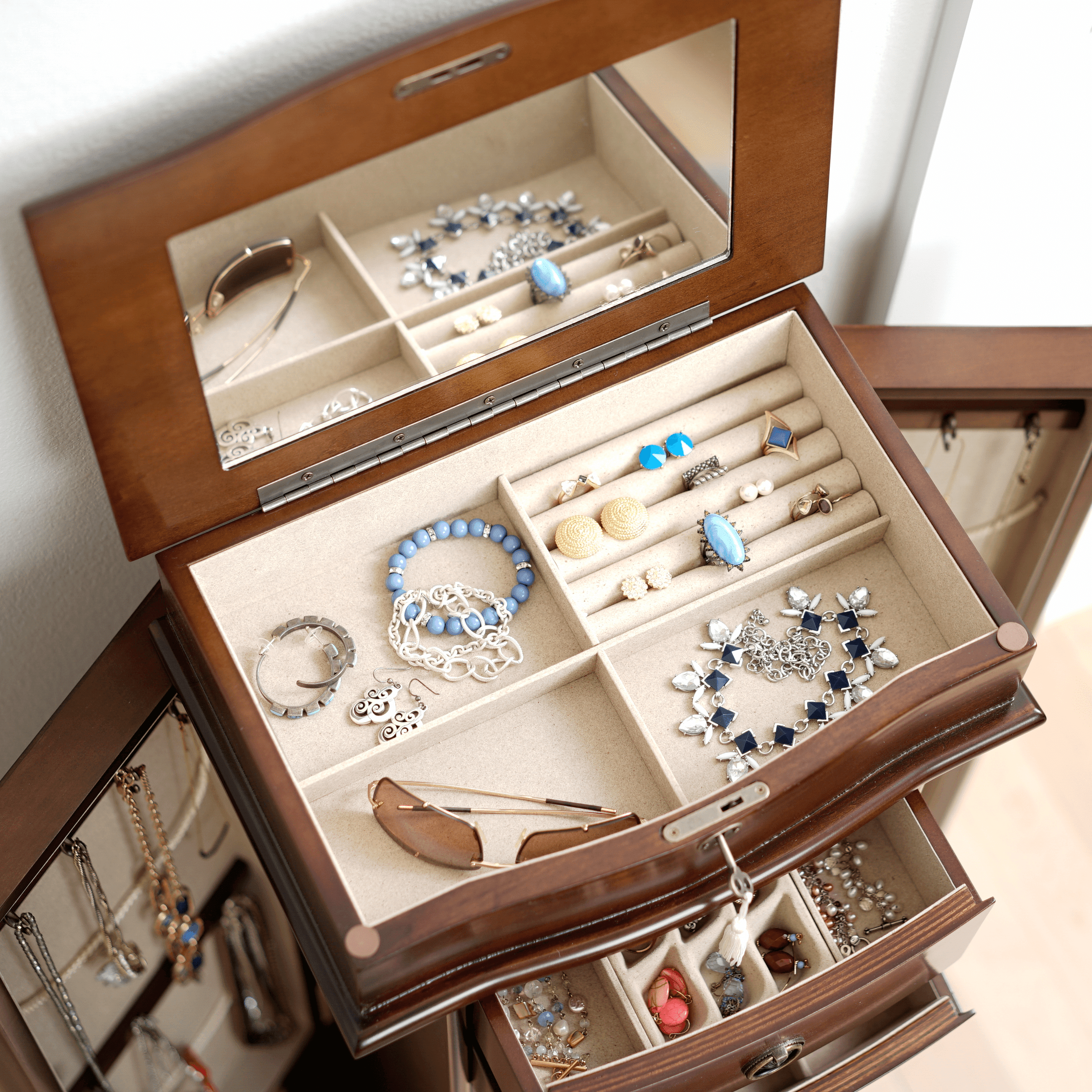 Hives and Honey Nora Traditional Jewelry Armoire with Locking Compartment and Ample Storage, Walnut