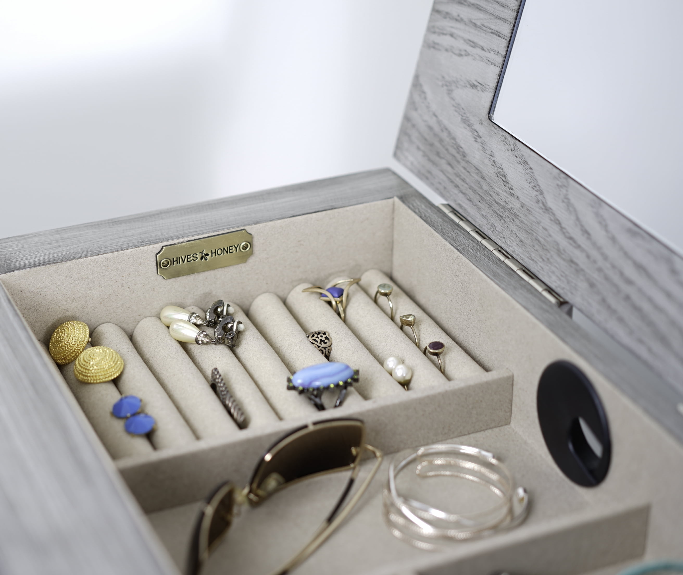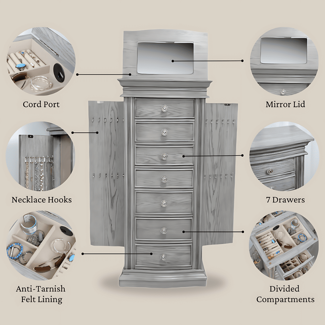 Hives & Honey Landry Smoke Grey Modern Jewelry Armoire for Women – Storage Cabinet