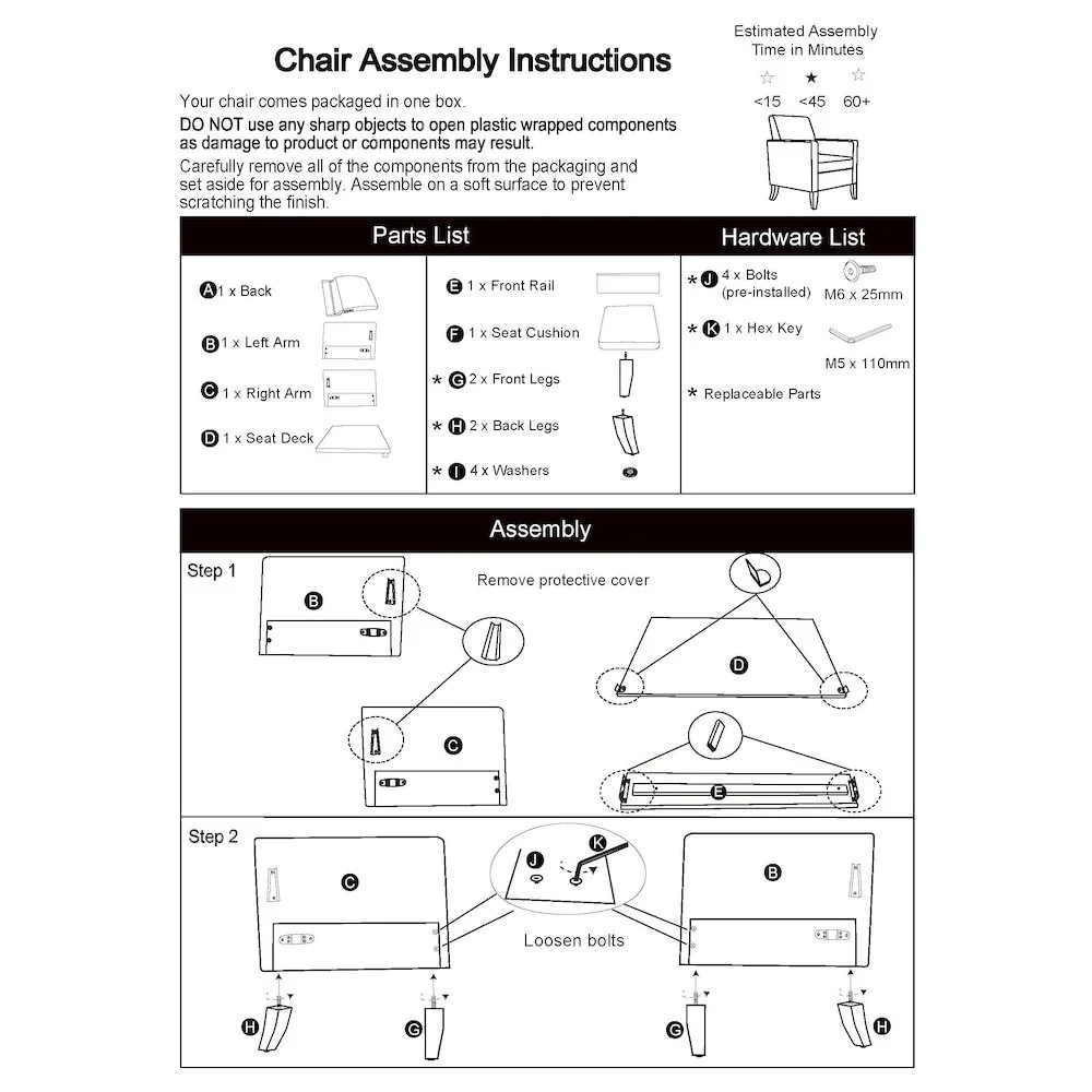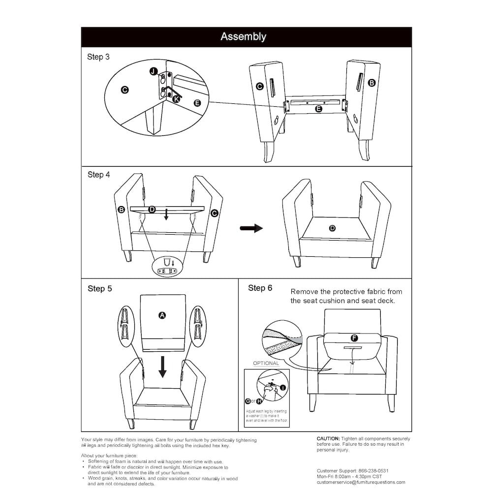 Seat Dimensions: 19.5 in. H x 21 in. W x 20 in. D Engineered mixed hardwood frame construction Tight square back with diamond-shaped button and removable seat cushion Solid wood legs in a dark brown finish for strength and style Conveniently designed, this chair includes all necessary hardware and clear step-by-step instructions for easy assembly Seats up to 300 lbs.