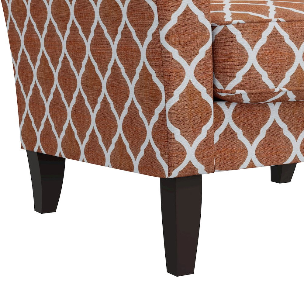 HL Home Furnishings Alex Transitional Flared Arm Armchair in Orange Trellis