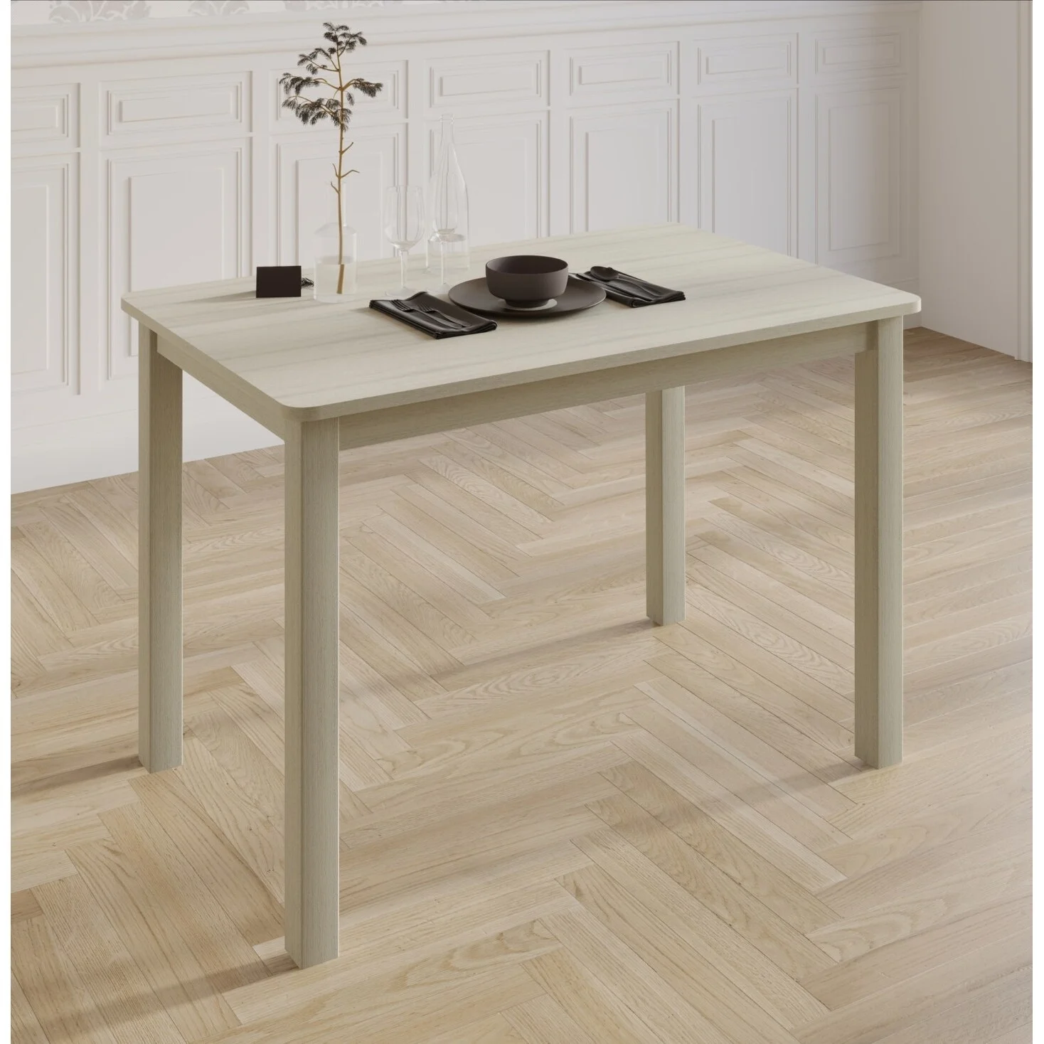 Fit perfectly for indoor small spaces Comfortable upholstery cushion and ladder backrest for an open look Table: 43.3″ L x 27.6″ W x 29.1″ H Modern design