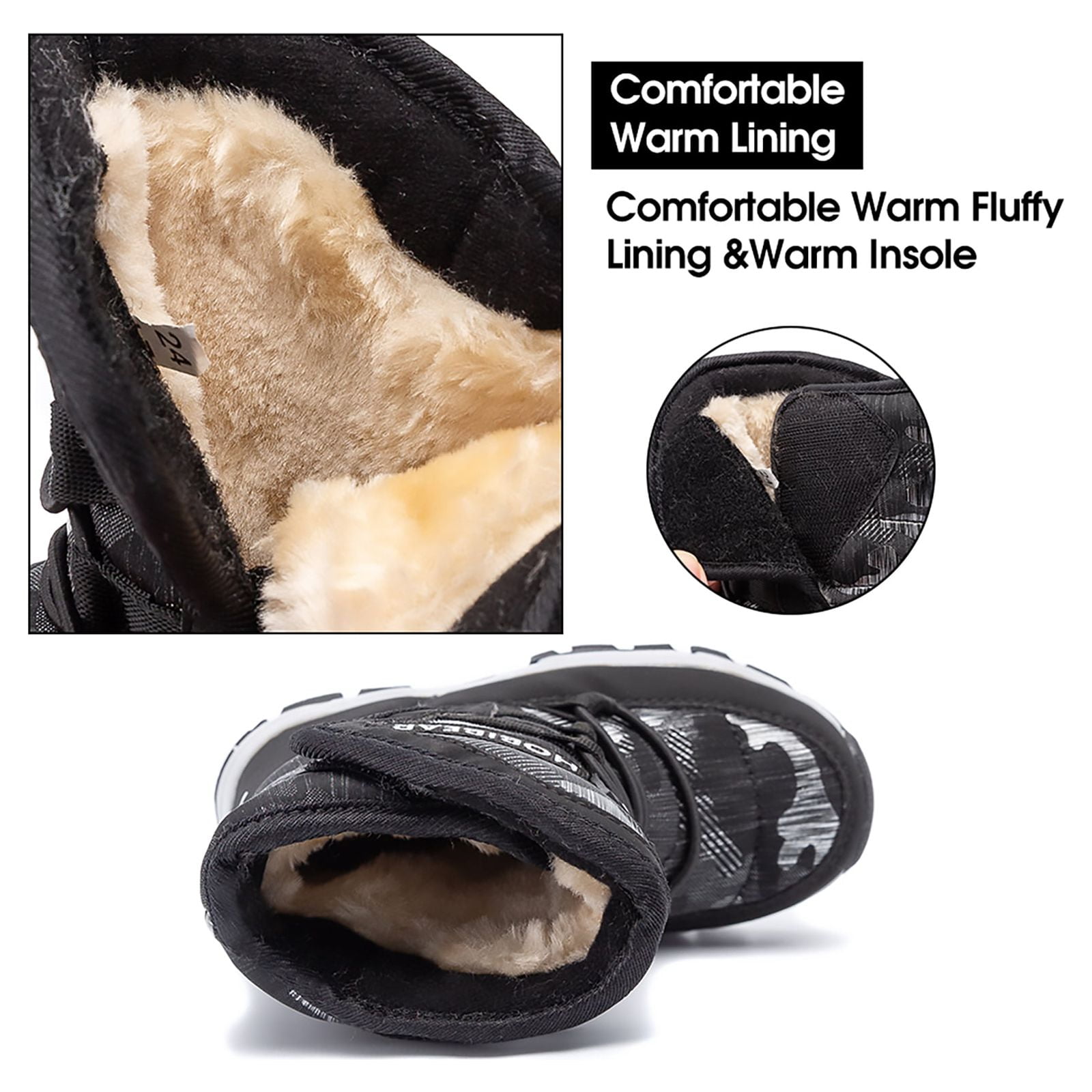 Whether kids are playing in the snow, heading off to school or exploring the backyard, this winter snow boots will keep them cozy and provide warmth for the duration of their outdoor adventure. Completed with waterproof upper, dry soft plush faux fur lining and anti-skid rubber sole, they are best options for your kids for any winter outdoor activities with maximizing warmth and comfort all day.
