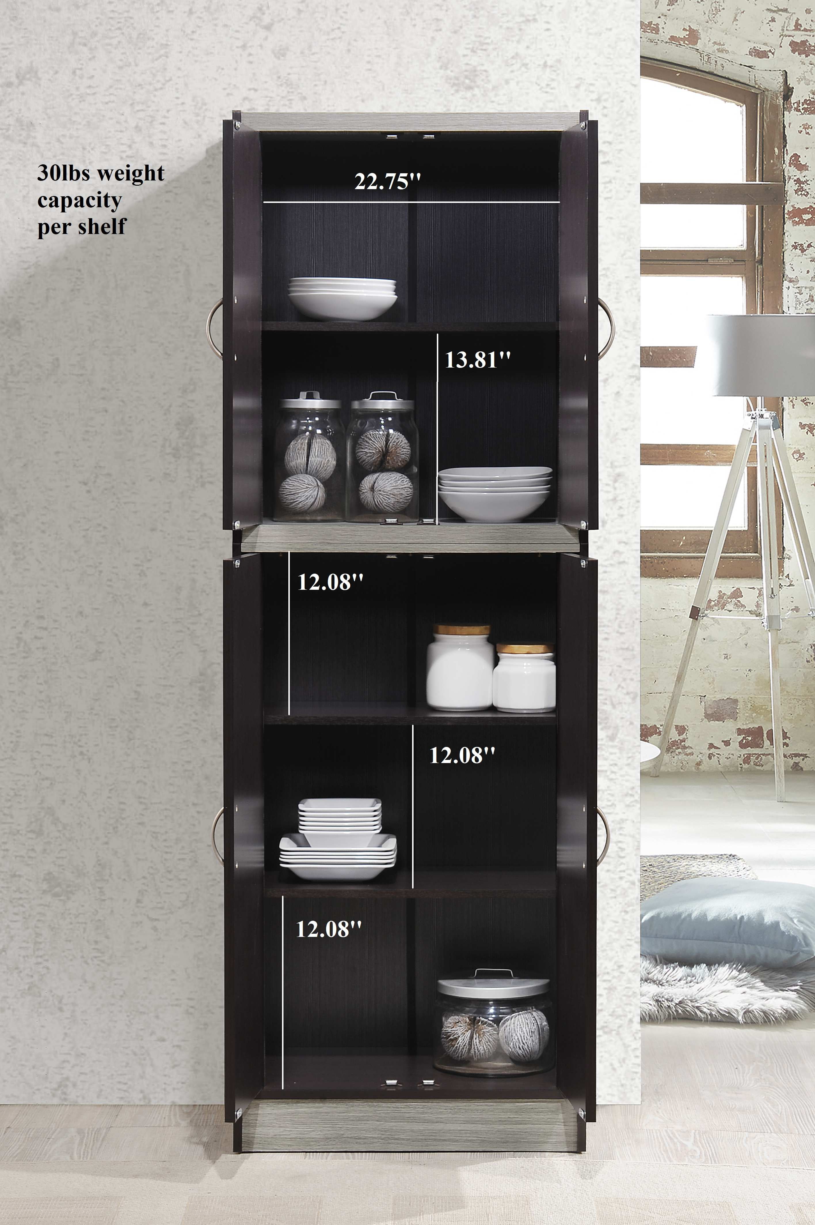 Hodedah 4-Door Kitchen Pantry with 4-Shelves, Beech