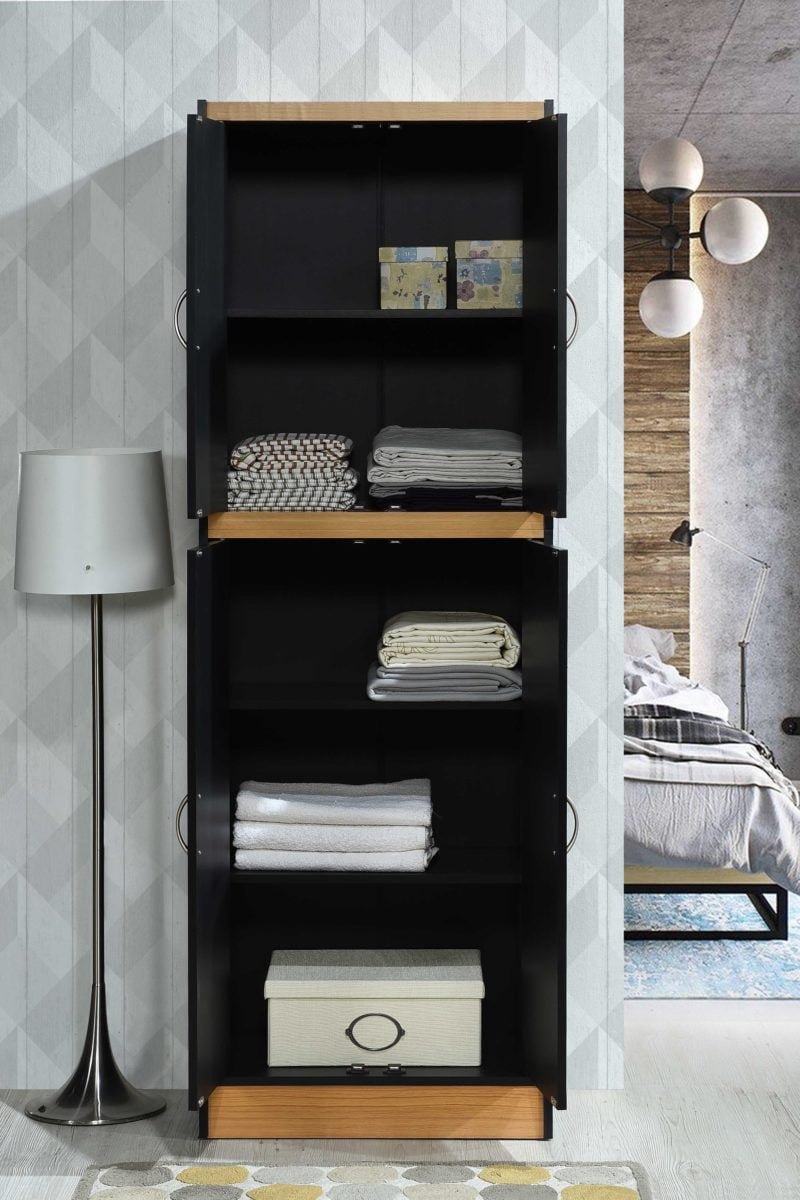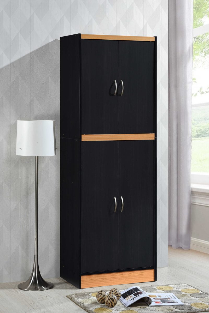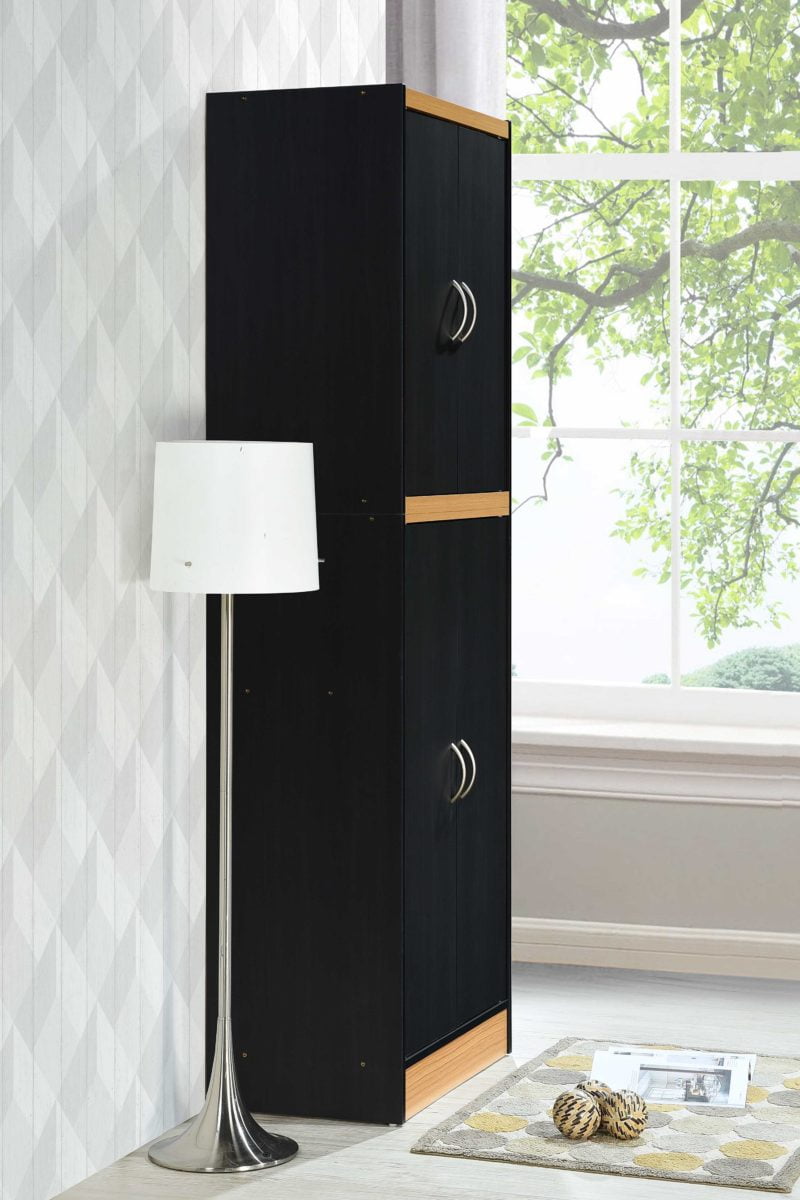Hodedah 4-Door Kitchen Pantry with 4-Shelves, Black-Beech