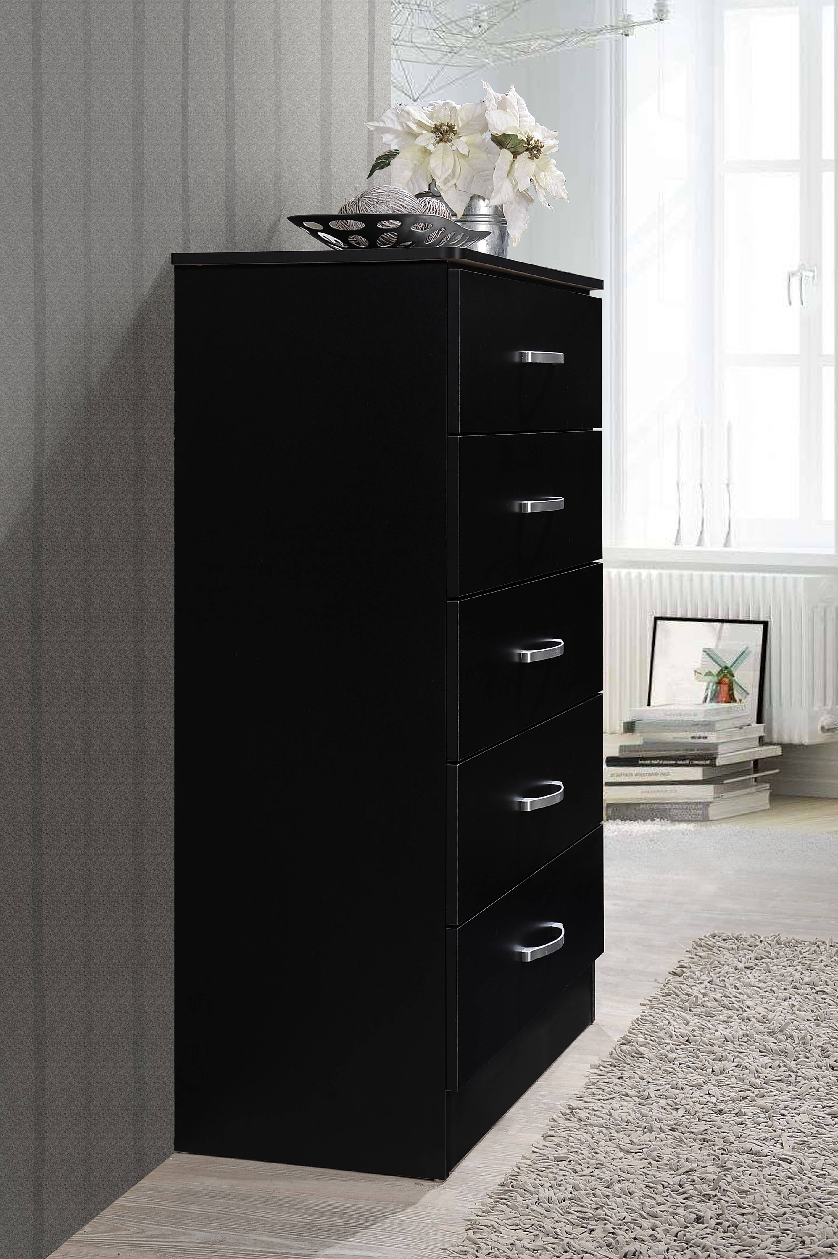 The Hodedah Five Drawers Chest is a simple yet functional piece to add to your bedroom. With its contemporary styling, you can choose according to your decor, as this chest is available in multiple finishes. It is manufactured entirely out of wood which makes it durable for many years. The Hodedah Chest has five drawers and provides ample storage space accommodating all your clothes perfectly. Each drawer has sufficient support under them to handle the extra weight, making the drawers sturdy. Up the drama by topping this simply chic chest with an abstract sculpture and large framed family photos.