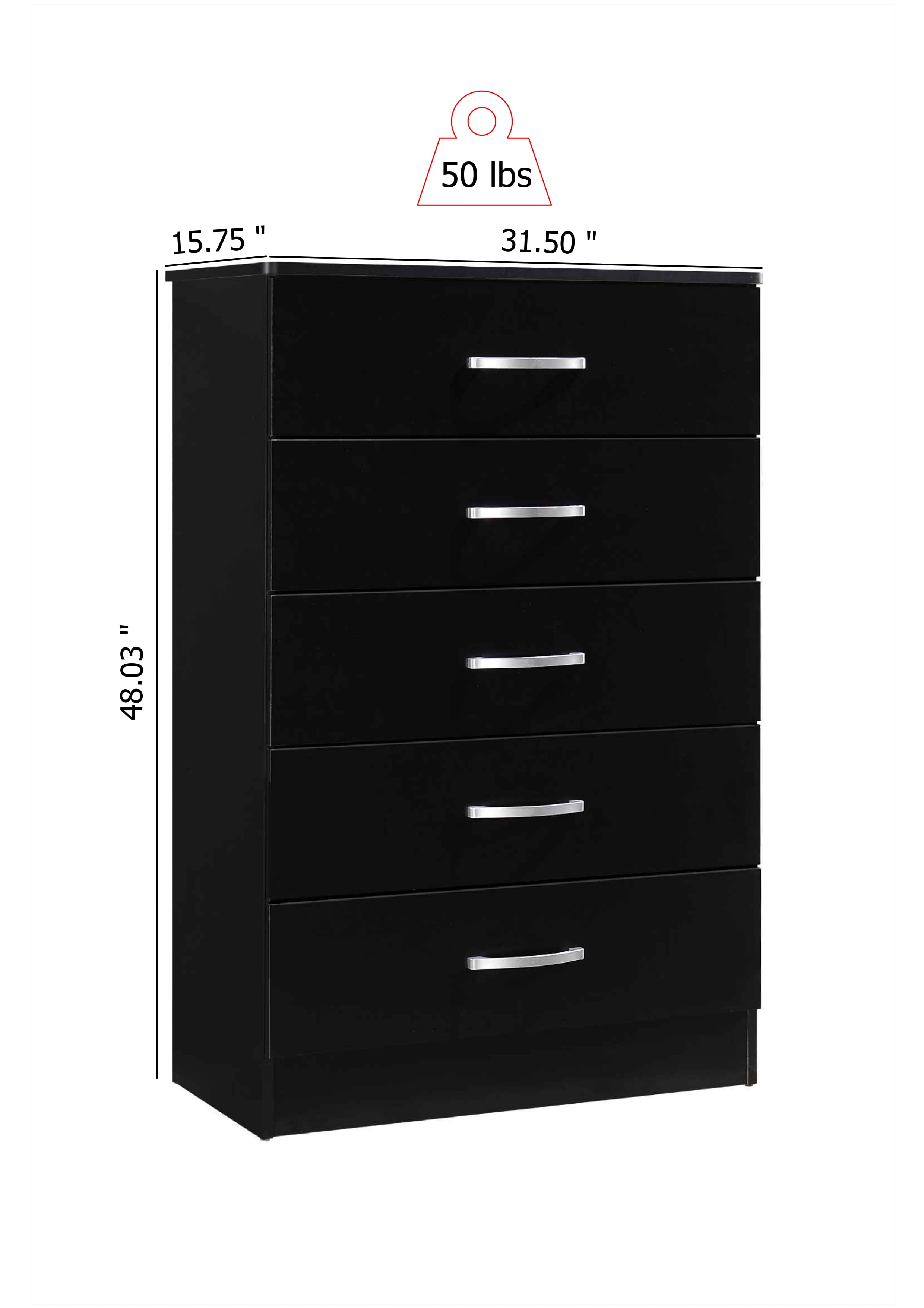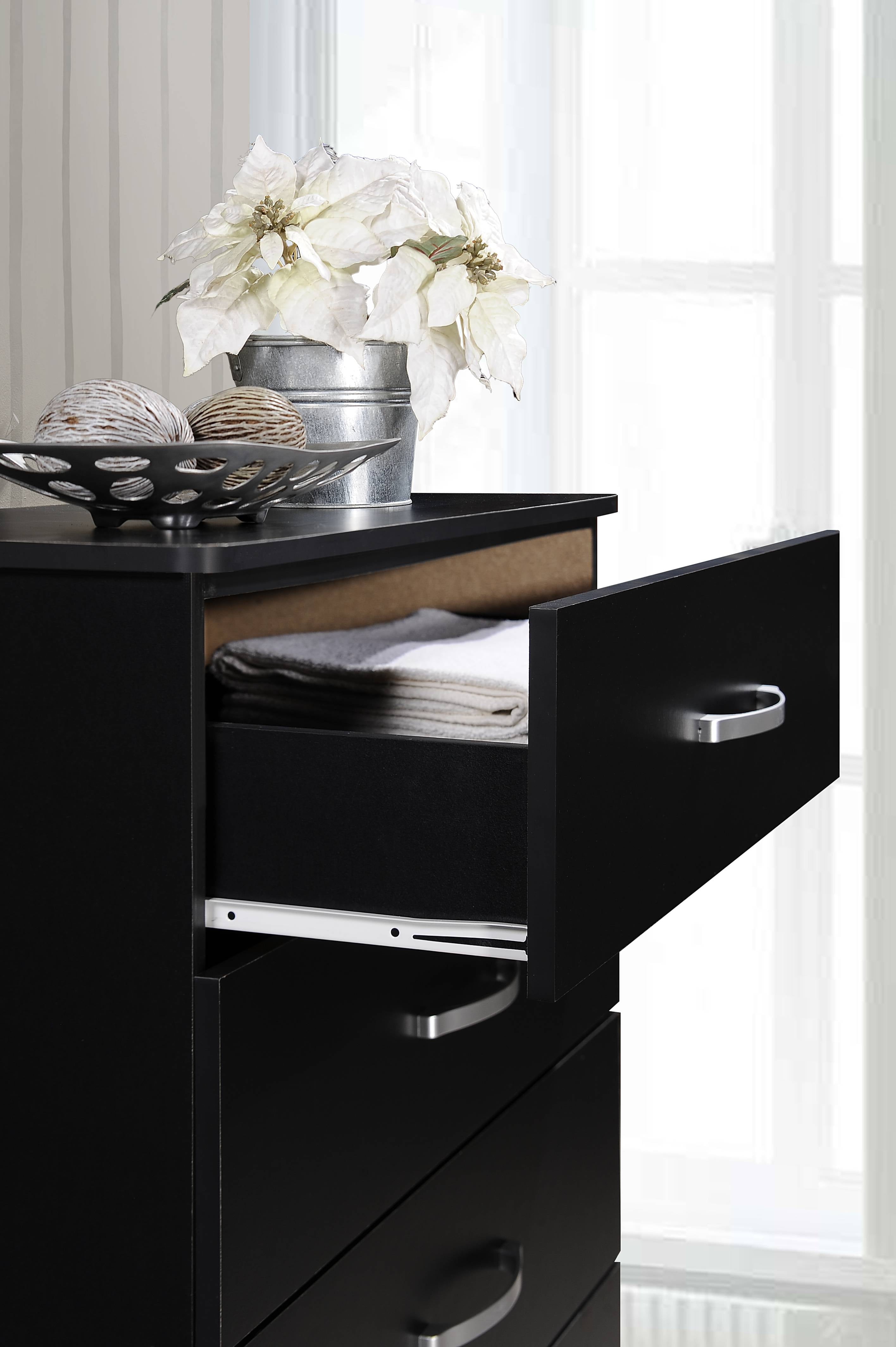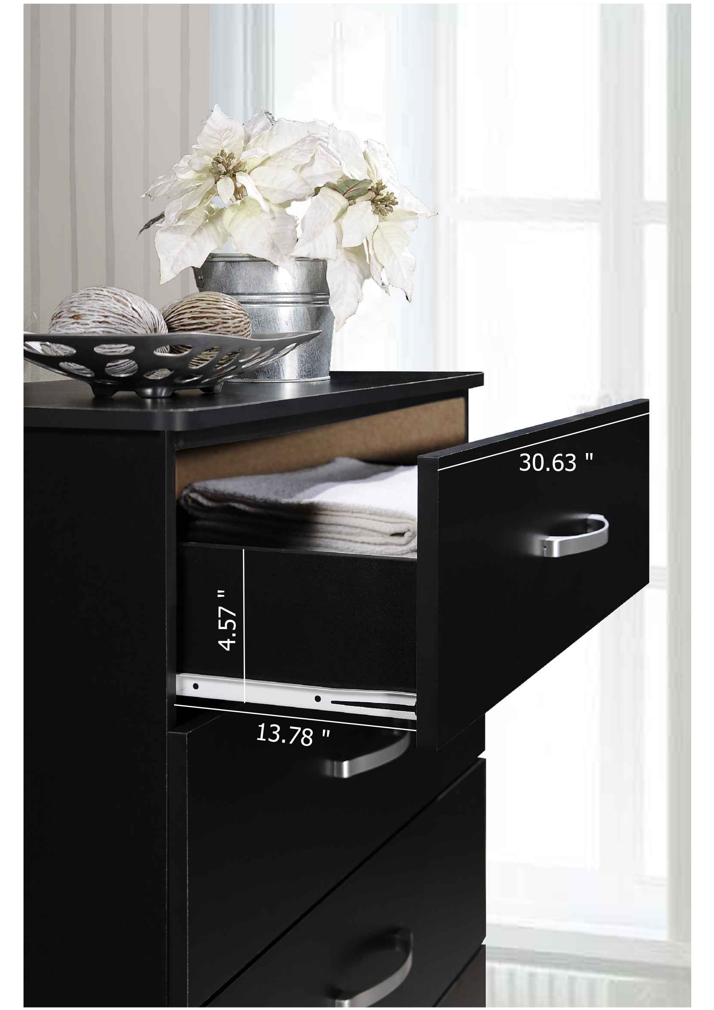 Support under each drawer to handle the extra weight Metal drawer glides Use alone or combine with matching bedroom collection pieces Available in beech, cherry, mahogany, black, and white Assembled dimensions: 47.3 in. H x 31.5 in. W x 14.6 in. D Hardware and manual included which makes set up fast and easy