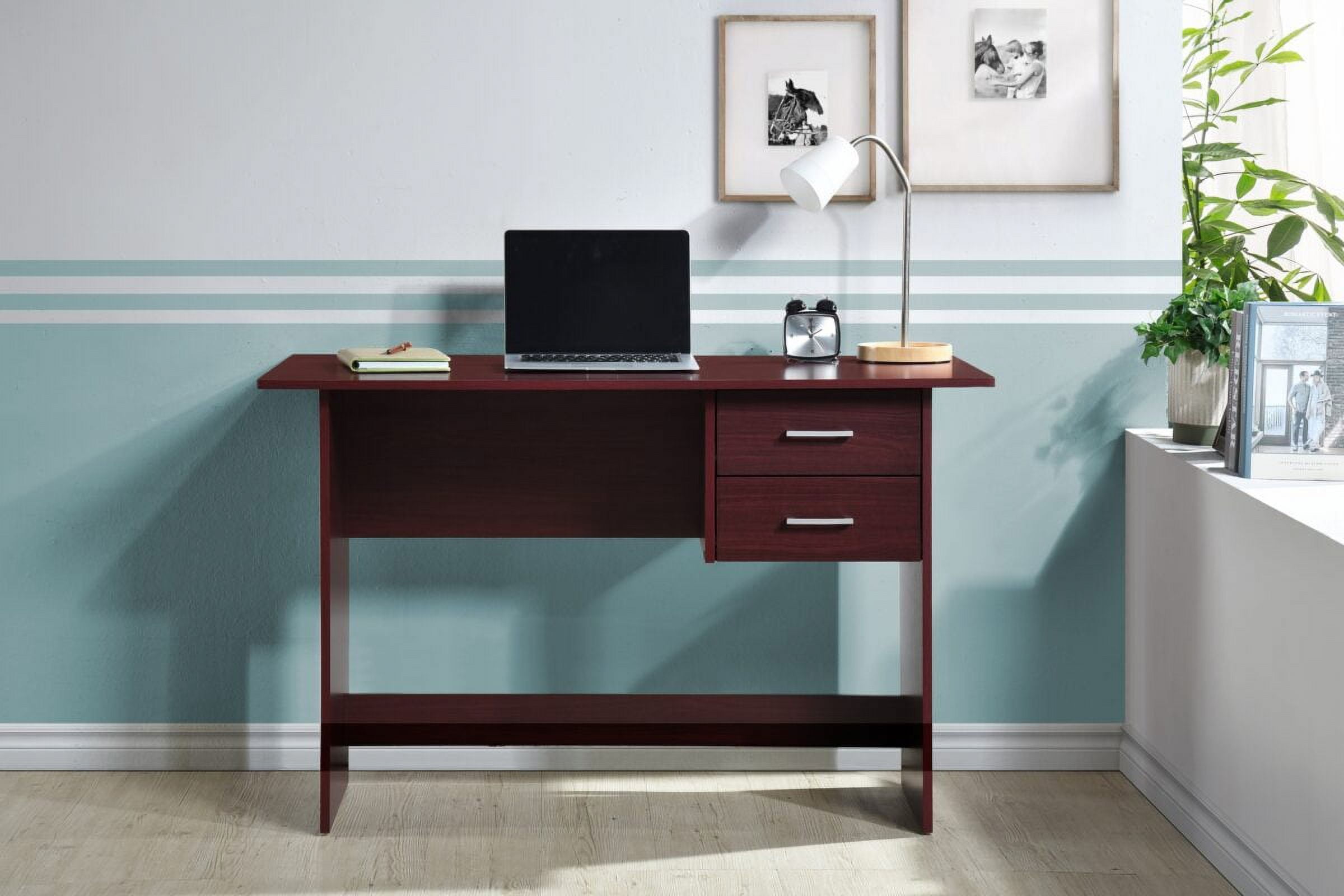 Hodedah Writing Desk with 2-Drawers in Mahogany