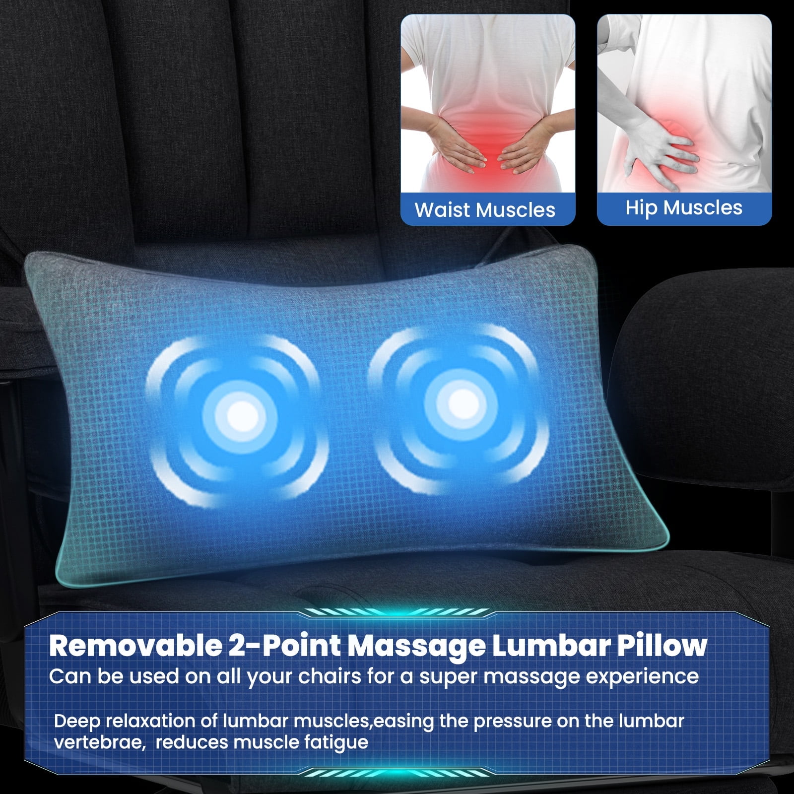 Lumbar Pillow with Dual-Point Vibration Massage: This Hoffree massage office chair’ lumbar pillow, integrated dual-point vibration massage feature to soothe and reduce lower back tension, it provids effective relief and lumbar support and enhancing comfort during long periods of sitting, working and gaming. Heavy Duty Office Chair 450lbs: Built with an SGS-certified Class 3 gas cylinder and a large metal base, this big and tall office chair is designed to handle up to 450lbs, for enhanced strength and safety. Generous seat cushions and wide armrests provide a comfortable and secure experience for people of all sizes and adults. 155 Degree Reclining Office Chair: Our high back executive office chair, featured a back angle that adjusts from 90° to 155°, customizable seat height, and an extendable footrest, it offers versatile support for work, relaxation, and naps. Outward-Extended and Thickened Armrests: This home office chair with enlarged and padded armrests provides superior softness and comfort, offering a more supportive and relaxing experience. Breathable Mesh and Premium Cotton-Spring Cushion: Ergonomic Fabric office chair’s seat cushion features breathable mesh sides for optimal airflow and heat dissipation, combined with a blend of natural cotton and pocketed spring coils for exceptional comfort and support. The widened seat design removes restrictive side wings, offering greater freedom of movement. Additionally, desk office chair made with fabric material enhances breathability. High Back Ergonomic Computer Chair: High back office chair with a contour-hugging design that offers multi-directional support for your back, neck, and shoulder comfort, ensuring unparalleled comfort for extended work or gaming sessions. WHY CHOOSE HOFFREE BIG AND TALL OFFICE CHAIR ? High Back with Full Support: Offers excellent lumbar and shoulder support, helping to maintain proper posture and reduce back pain. It also can be adjusted up to 155 degrees for a personalized reclining experience. Massage Lumbar Support: The lumbar pillow features a dual-point massage function to help alleviate lower back pressure. Spring-Loaded Cushion: Provides comfortable cushioning with good bounce, easing pressure and enhancing long-term sitting comfort. Adjustable Wide Armrests: Lets you customize armrest height for better arm support, reducing shoulder and neck strain and improving overall comfort for different users. Fabric Office Chair: desk office chair made with fabric material enhances breathability.