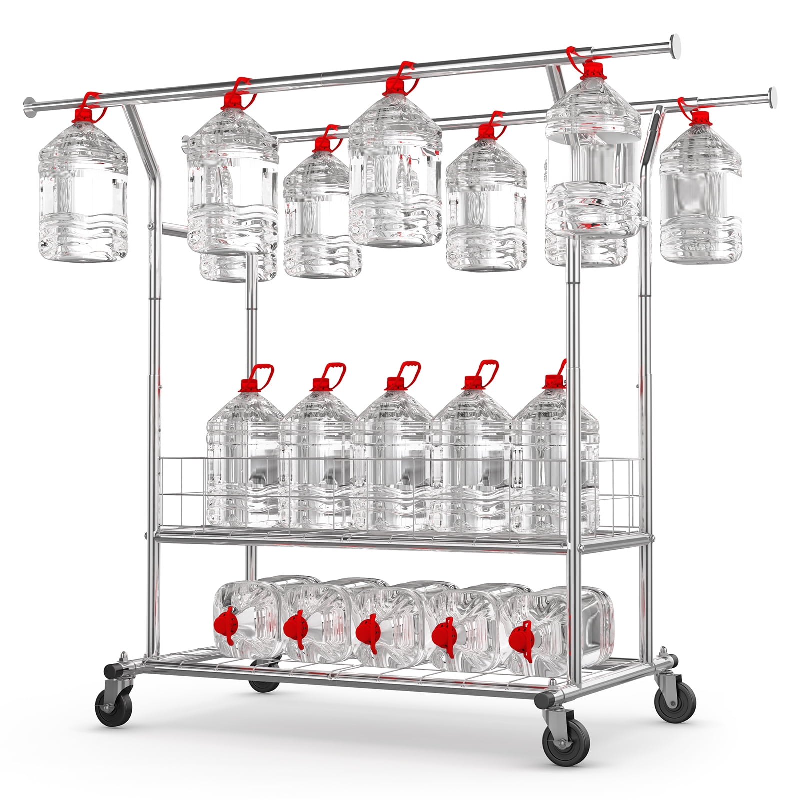 HOKEEPER 670lbs Heavy Duty Double Clothing Garment Rack with Shelves and Metal Basket Clothing Racks on Wheels Rolling Clothes Rack for Hanging Clothes Commercial Grade