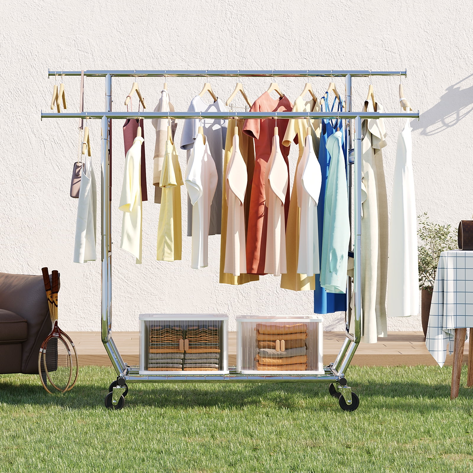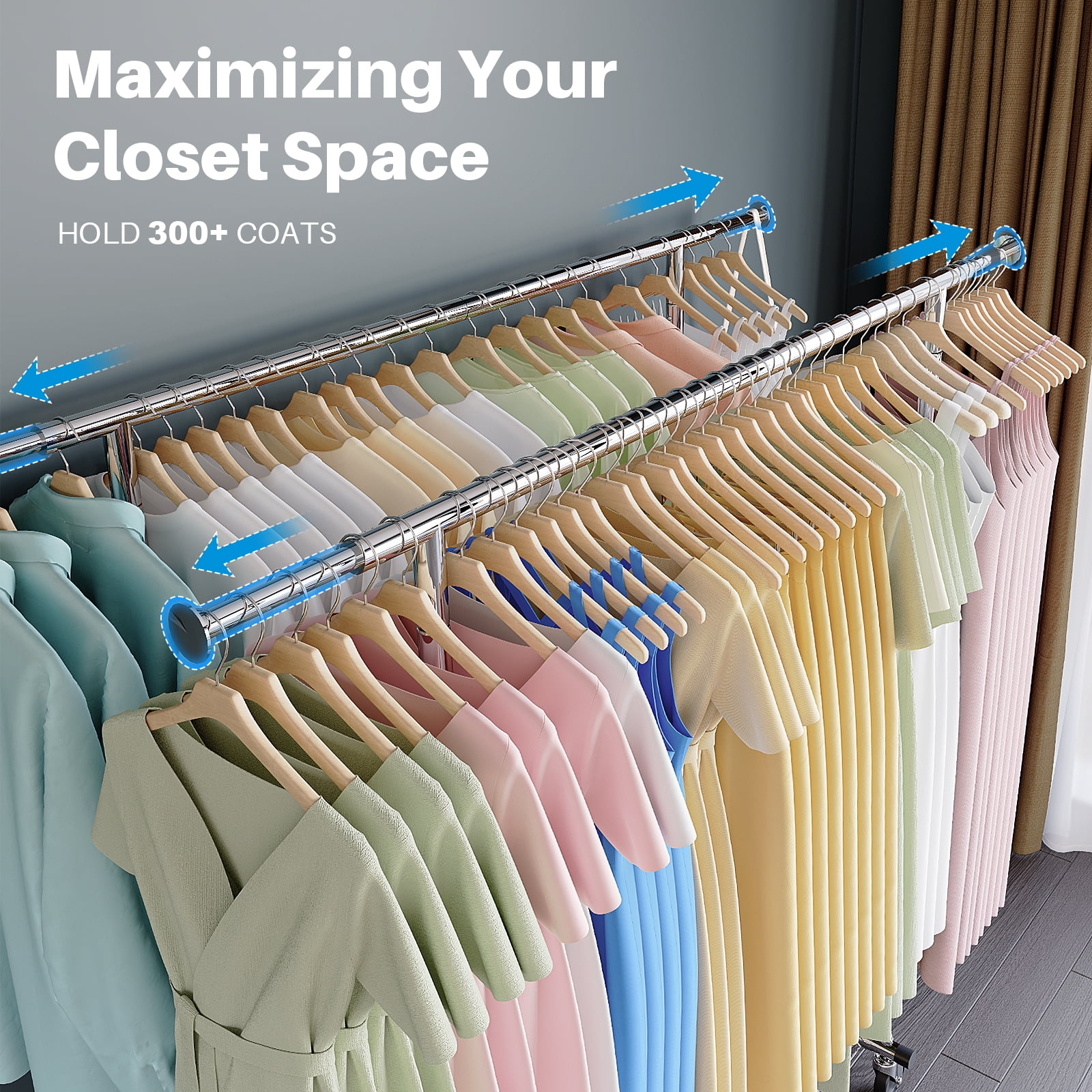 HOKEEPER 680 lbs Heavy Duty Clothing Garment Rack with Shelves Commercial Grade Clothing Racks on Wheels Rolling Double Clothes Rack Portable Collapsible Adjustable, Chrome Finish