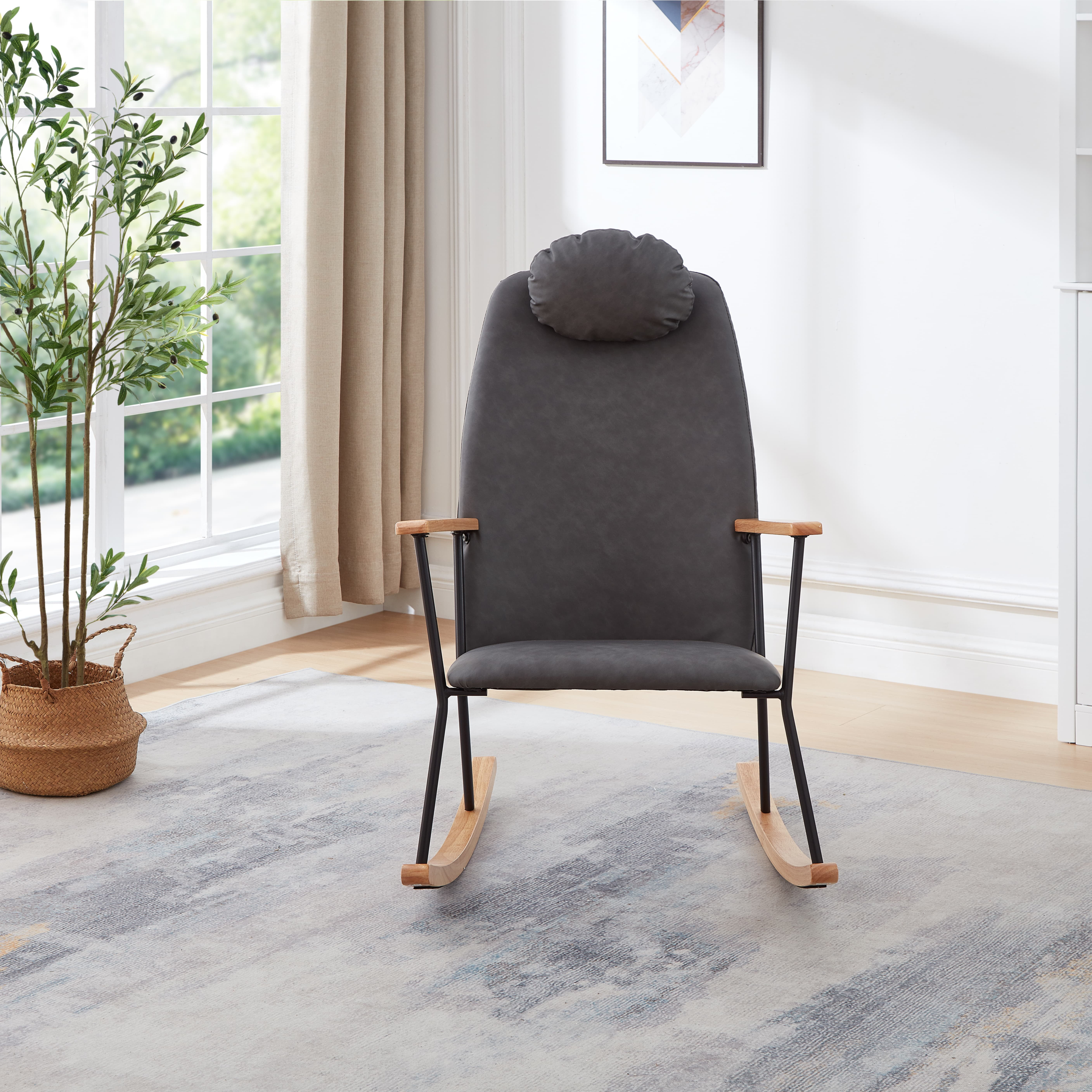 ✔ Ergonomic High-Back Design:Features a contoured high backrest and adjustable headrest pillow for optimal neck/spine support. The right swing angle provides gentle motion while maintaining stability. ✔ Premium Comfort : Thick sponge-filled seat & back cushion wrapped in ultra-soft teddy fabric offers cloud-like comfort. Resistant to sagging for long-term use. ✔ Hybrid Durability:Metal + rubberwood frame ensures sturdy support (holds 250 lbs). Natural wood legs add warmth to modern spaces. ✔ Multi-Space Versatile: Sleek light grey upholstery blends into nurseries, bedrooms, or living rooms. Compact 24.4″L x 30.1″W fits small corners. ✔ 20-Minute Assembly: Includes pre-attached headrest, tools & instructions. Hassle-free setup for immediate relaxation.