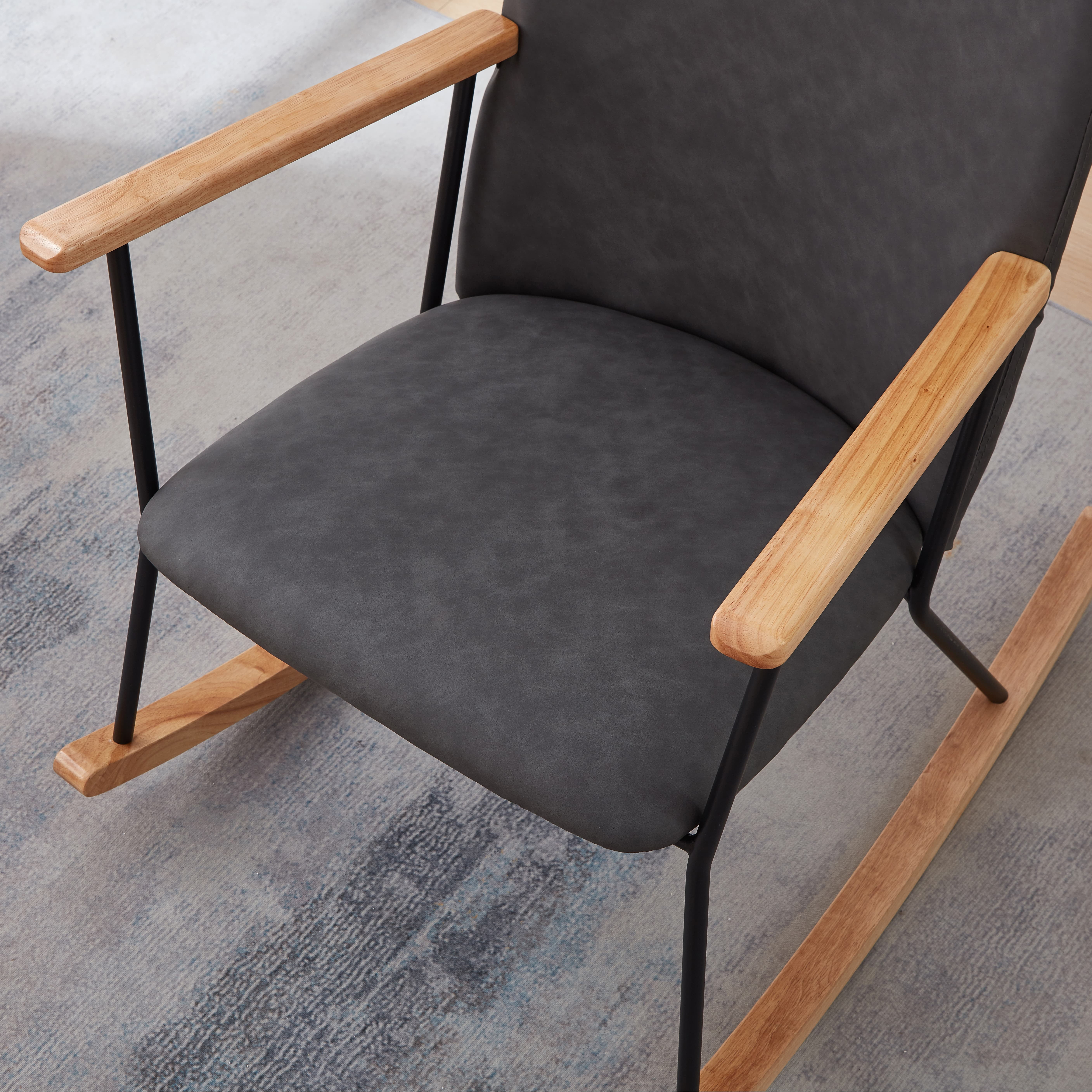 Holaki Nursery Rocking Chair Teddy, Baby Fluffy Glider Rocker for Adults Glider Rocker Rocking Accent Chair Padded Seat with High Backrest Armchair Comfy Side Chair for Living Room Bedroom, Dark Grey