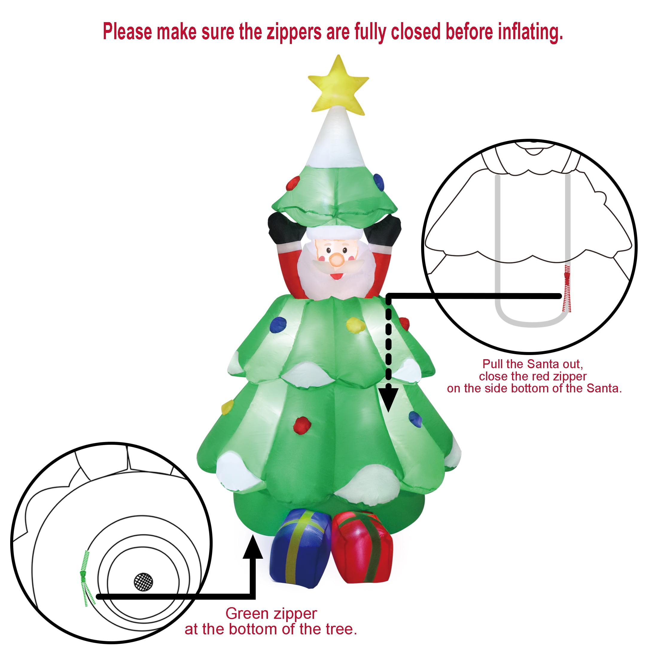 Holiday Time brings you a happy and fresh holiday season with this Interesting Holiday Time 6FT Christmas Santa Pops out of Christmas Tree Inflatable. An interesting Christmas Outdoor Decoration for a Christmas Party, Christmas Eve, or Christmas Night in the Yard, Garden, Lawn, or Home. Light up in the evening to bring kids, neighbors, and guests into a fantastic Christmas world. Easy to set up, self-inflates within seconds, allowing the Pop-up Santa Tree to bring freshness to the Christmas holiday and extend greetings to everyone. Enjoy your Christmas holiday with Holiday Time 6FT Christmas Pop-up Santa Tree Inflatable.