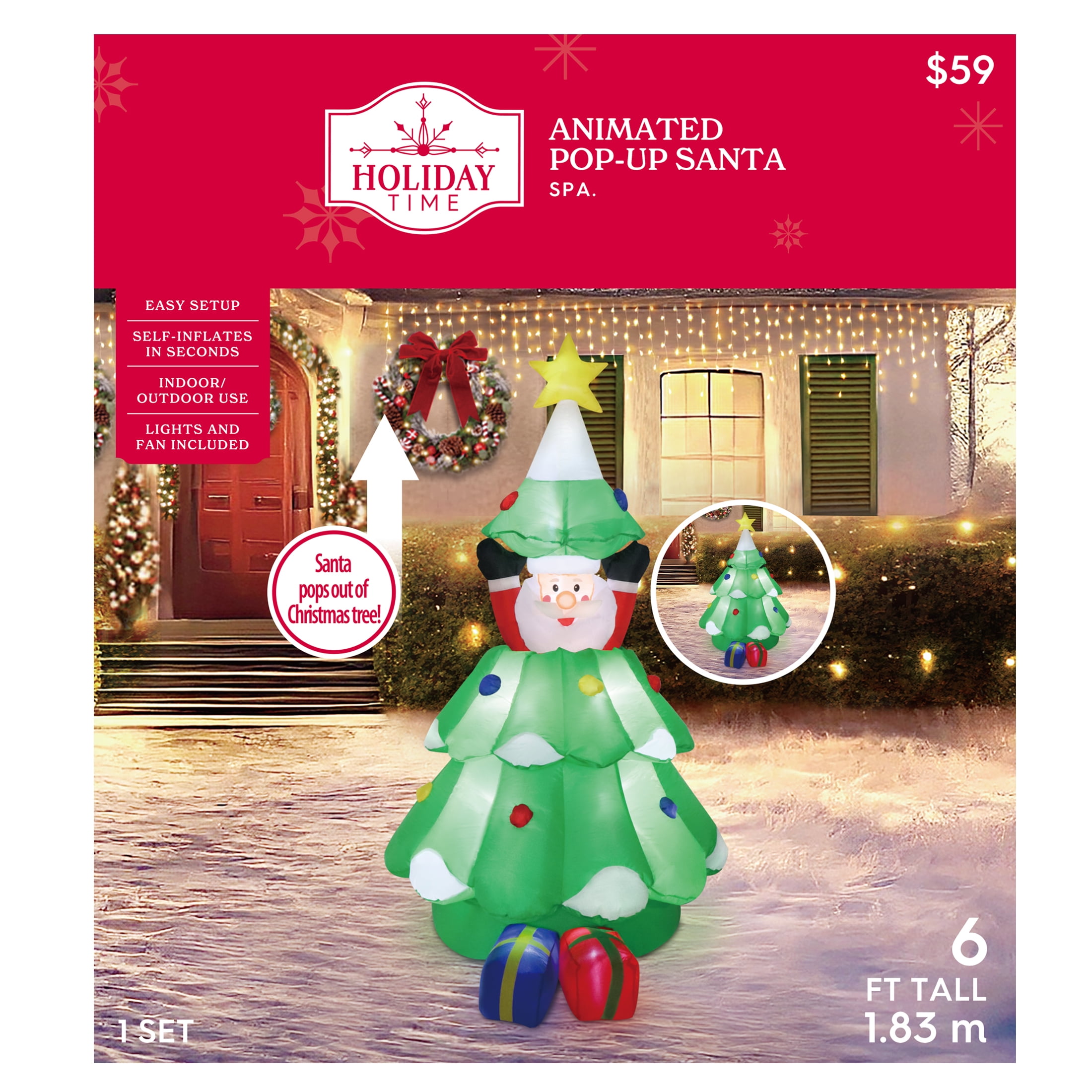 Holiday Time Christmas Animated Pop-up Santa Tree with Gift Boxes Inflatable, 6FT