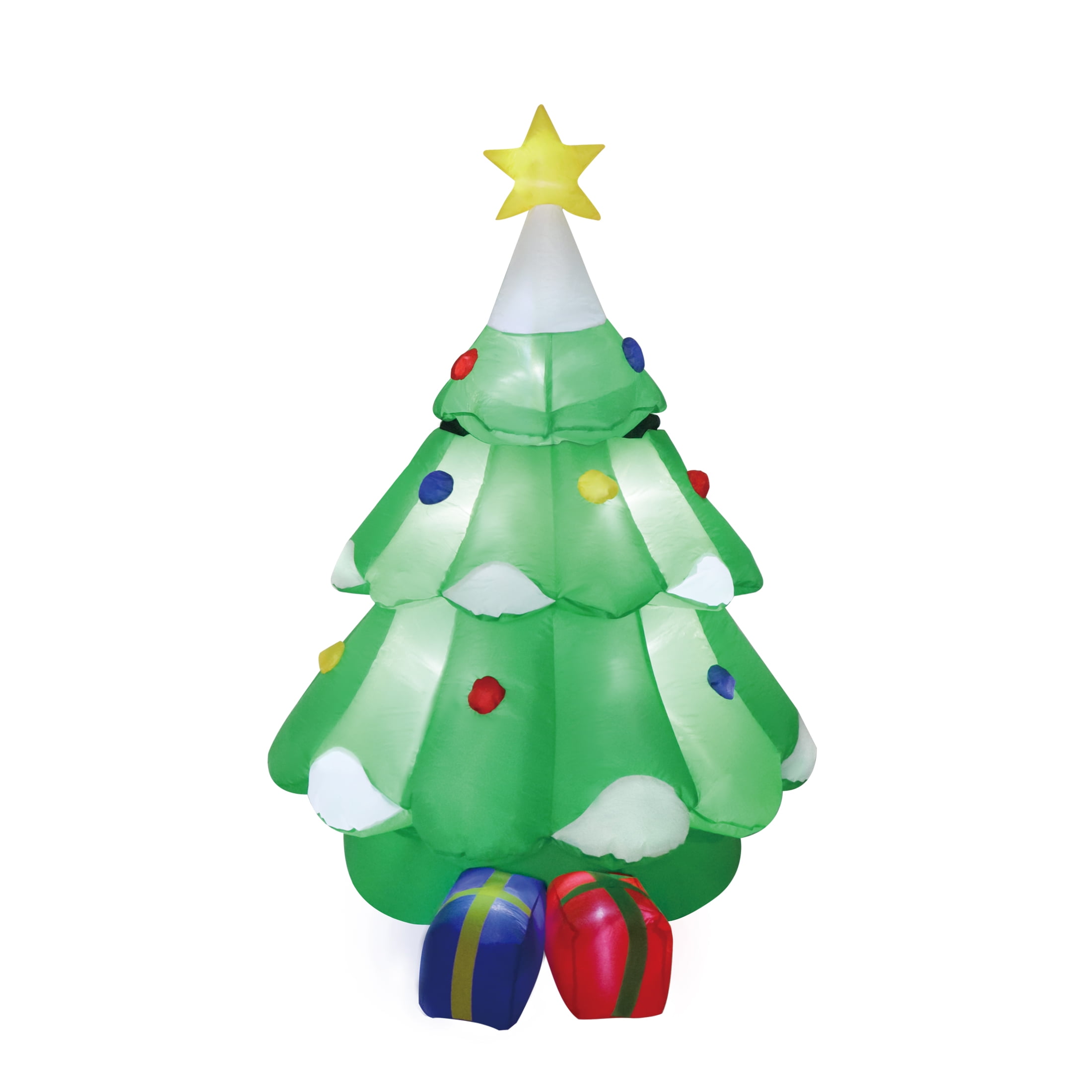 Holiday Time Christmas Animated Pop-up Santa Tree with Gift Boxes Inflatable, 6FT• The Pop-up Santa Tree stands 6FT in Height• Made of 65% POLYESTER;20% ELECTRONIC COMPONENTS;5% PS;4% PCB;3% COPPER;2% IRON;1% PVC;• Weight: 2.3 kg;• Model# A0720005A • Comes with stakes and tethers for easy setup• Lights with energy-efficient LED lighting• ETL Listed power supply included• Stake it into the ground, plug it into a standard outlet, and go Self-inflates in seconds • For indoor and outdoor decorative purposes only• Easily deflates and folds for storage