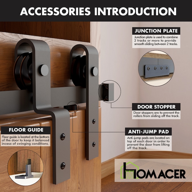 • BARN DOOR HARDWARE INSTALLATION MADE EASY – Homacer single track bypass allows your beautiful barn doors to slide bypass with each other on just one track