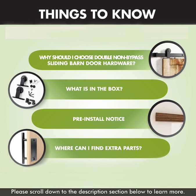 - BARN DOOR HARDWARE INSTALLATION MADE EASY – In our manual, you will see the step-by-step instructions with standard fractional in measurements, self-explanatory pictures, and concise word instructions