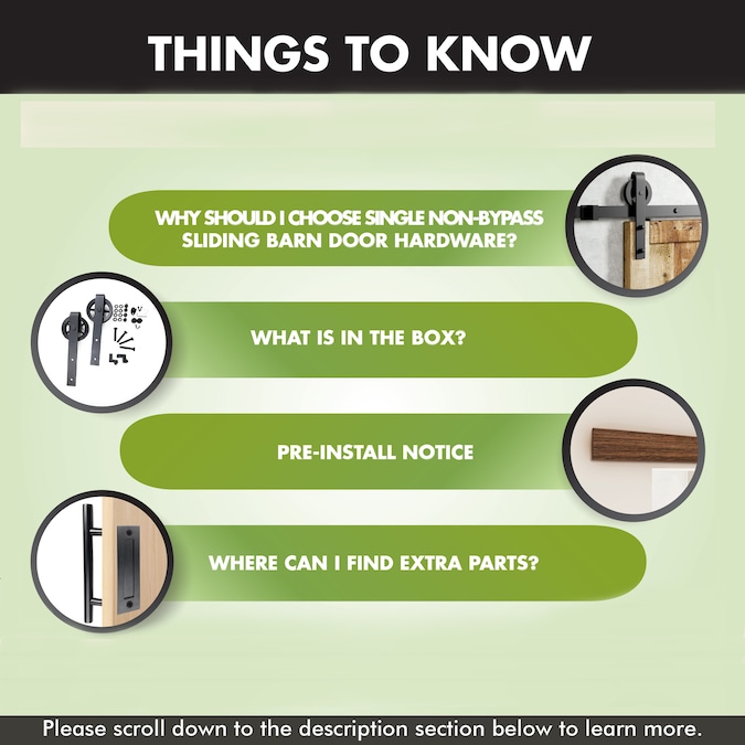 - BARN DOOR HARDWARE INSTALLATION MADE EASY – In our manual, you will see the step-by-step instructions with standard fractional in measurements, self-explanatory pictures, and concise word instructions