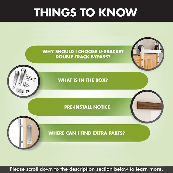 • Barn door hardware installation made easy- In our installation manual, you will see the step-by-step instructions with USA standard fractional inch measurements, self-explanatory pictures, and concise word instructions
