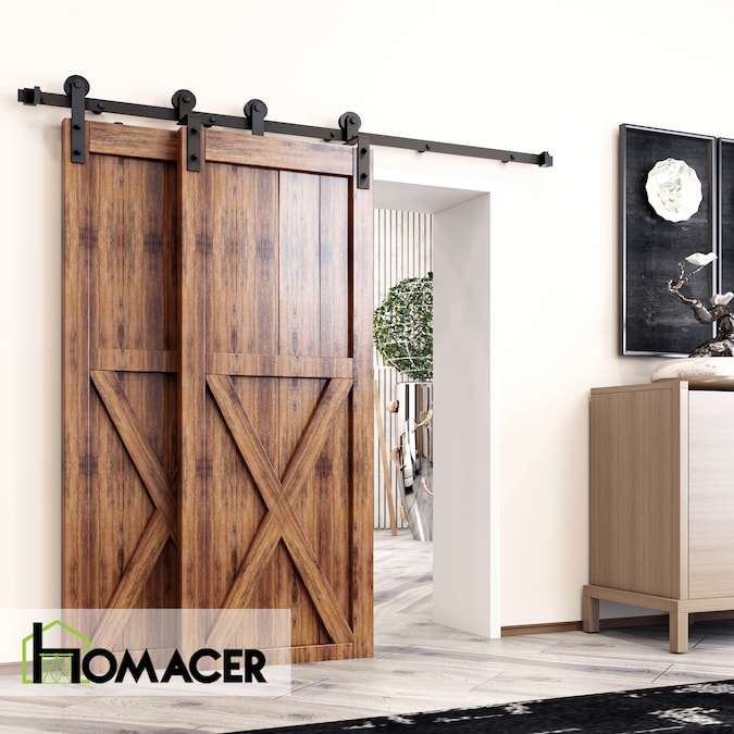 - BARN DOOR HARDWARE INSTALLATION MADE EASY – Homacer single track bypass allows your beautiful barn doors to slide bypass with each other on just one track