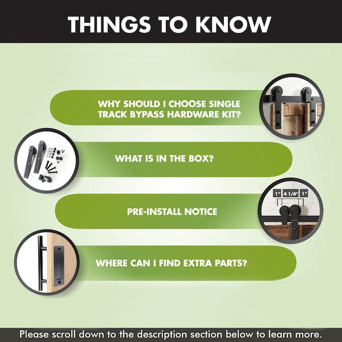 - BYPASS OPTIONS MADE AVAILABLE ON ONE TRACK – With our single track bypass option, installing a bypass kit has never been easier since you can just follow the steps for a standard double door kit and replace the regular hangers with the bending ones