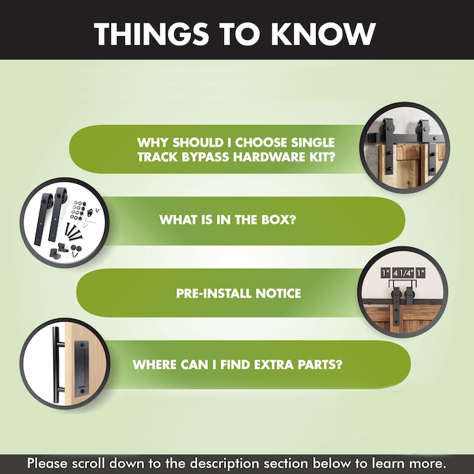 - BYPASS OPTIONS MADE AVAILABLE ON ONE TRACK – With our single track bypass option, installing a bypass kit has never been easier since you can just follow the steps for a standard double door kit and replace the regular hangers with the bending ones