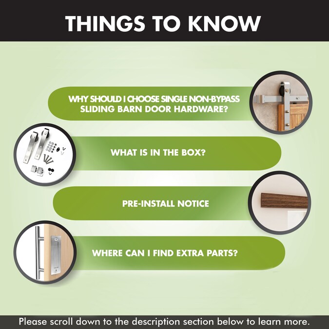 - BARN DOOR HARDWARE INSTALLATION MADE EASY – In our manual, you will see the step-by-step instructions with standard fractional in measurements, self-explanatory pictures, and concise word instructions