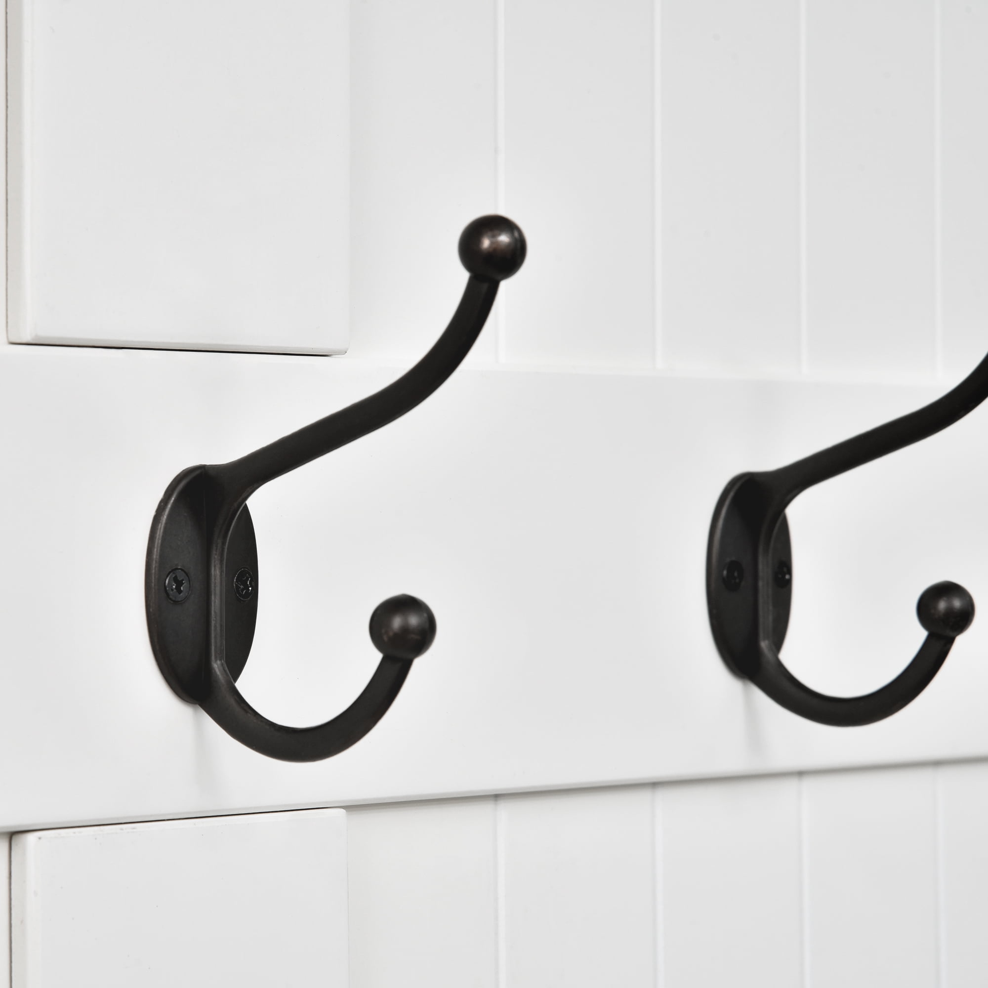 HOMCOM 3-In-1 Hall Tree Storage Bench and Coat Rack with 5 Steel Double Hooks, and Anti-Topple Anchor for Entryway, Cream White