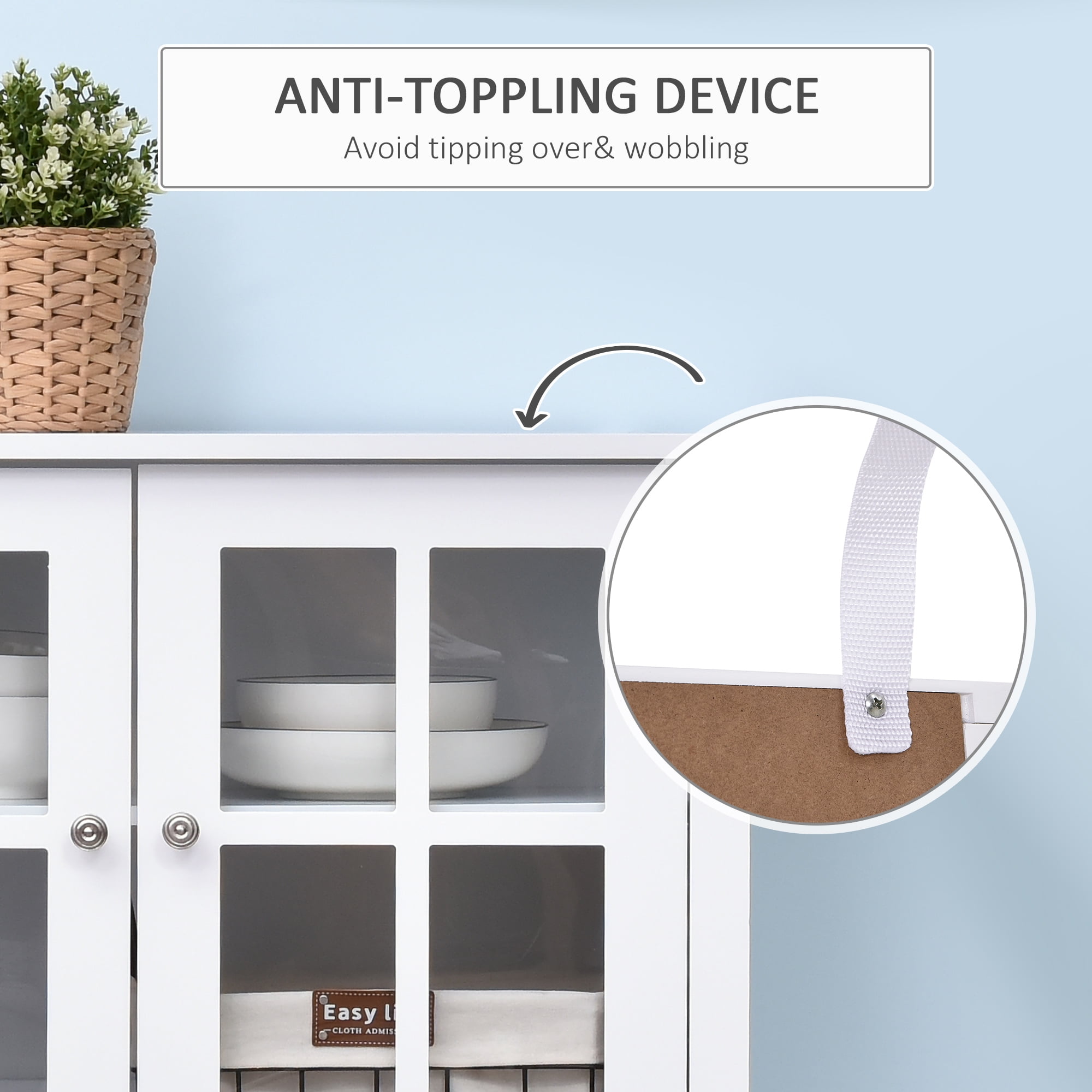 Features: Sturdy M2 grade MDF construction with oil painting for a long-lasting use An adjustable shelf and a bottom shelf provide ample storage space Can be used in any room including the kitchen, bathroom, bedroom, hallways, etc. Simplistic and minimalist style brings a brand-new feeling of style and a classic look Transparent glass-paneled doors to find items briefly Easy to assemble and maintain Specifications: Color: White/Grey Material: Glass, MDF board Overall Dimensions: 31.5″ L x 11″ W x 33″ H Single Door Size: 13.25″ L x 17.5″ H Metal Handle Size: 1″ x 0.8″ H Inner Shelf Size: 27.5″ L x 9.5″ D x 0.5″ T Distance from the middle hole to either end: 8.75″ Inner Shelf Adjustable Distance: 2.5″ Bottom Shelf Size: 29.5″ L x 10.25″ D x 8.25 H” Height from ground: 4″ Total Weight Capacity: 66 lbs. Each Shelf Weight Capacity: 22 lbs. Net Weight: 30 lbs. Certification: P2