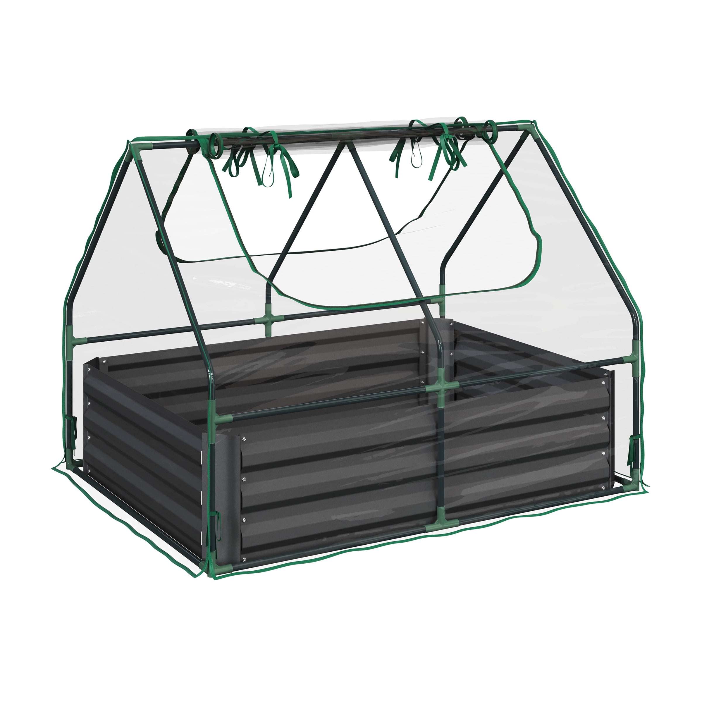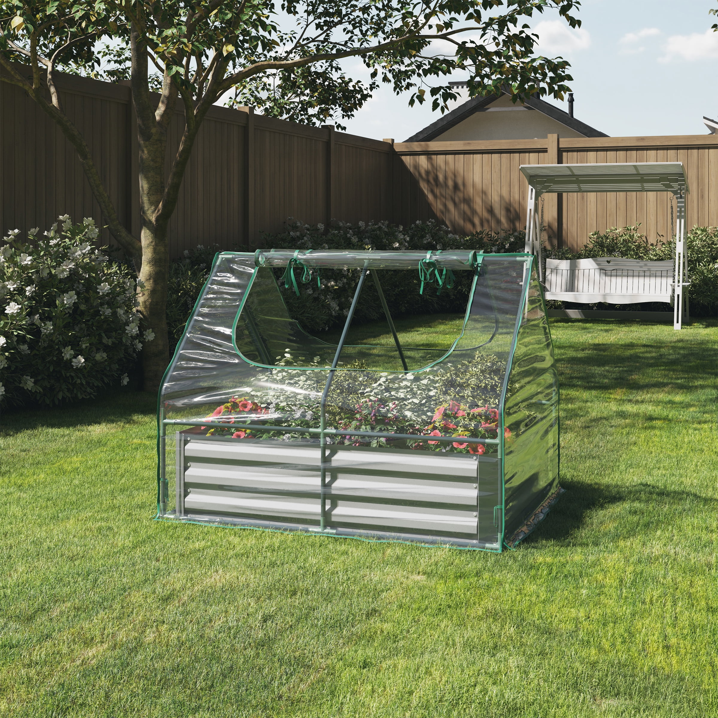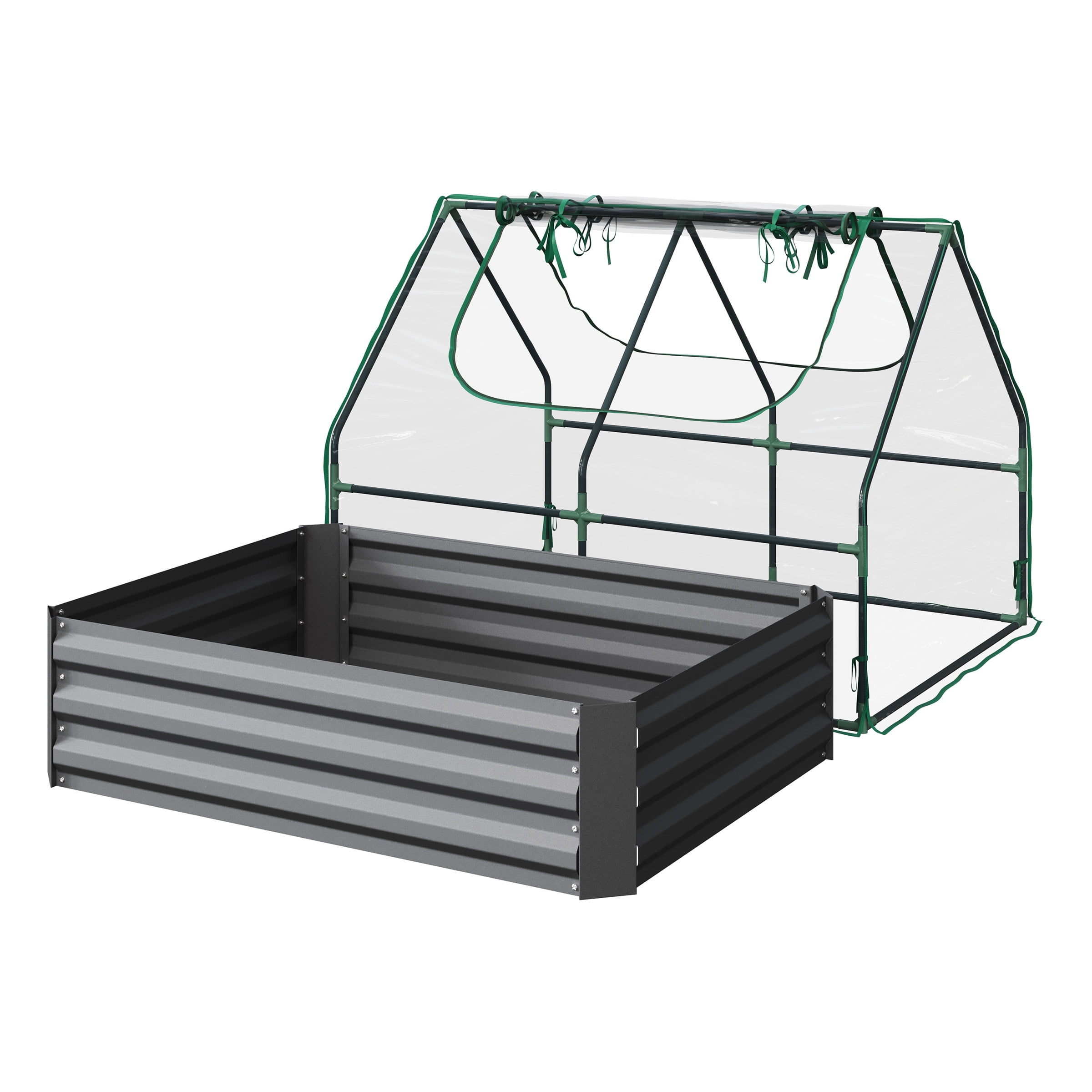 GALVANIZED RAISED GARDEN BED – Grow the garden of your dreams with this 71.3-gallon galvanized planter and detachable outdoor greenhouse. DROP OVER GREENHOUSE INCLUDED – This raised planter box includes a 4-foot-long by 3-foot-wide removable mini greenhouse with 2 zippered window vents for easy access to care for plants. PLANT-FRIENDLY DESIGN – The open-bottom garden bed allows proper drainage, while the waterproof greenhouse plant cover attachment allows nourishing sunlight through, retaining heat and moisture. DURABLE CONSTRUCTION – This garden box is constructed from rust-resistant, powder-coated galvanized steel, while the small greenhouse is made of durable PVC, for season after season of use. MATERIALS – Galvanized Metal and PVC. DIMENSIONS – Metal Base – (L) 4’ x (W) 3’ x (H) 1’; Greenhouse Cover – (L) 4’ x (W) 3’ x (H) 3’; Metal Base Side Thickness: 0.5mm; Metal Base Corner Thickness: 1mm; Planter Bed Capacity: 71.3-Gallons.